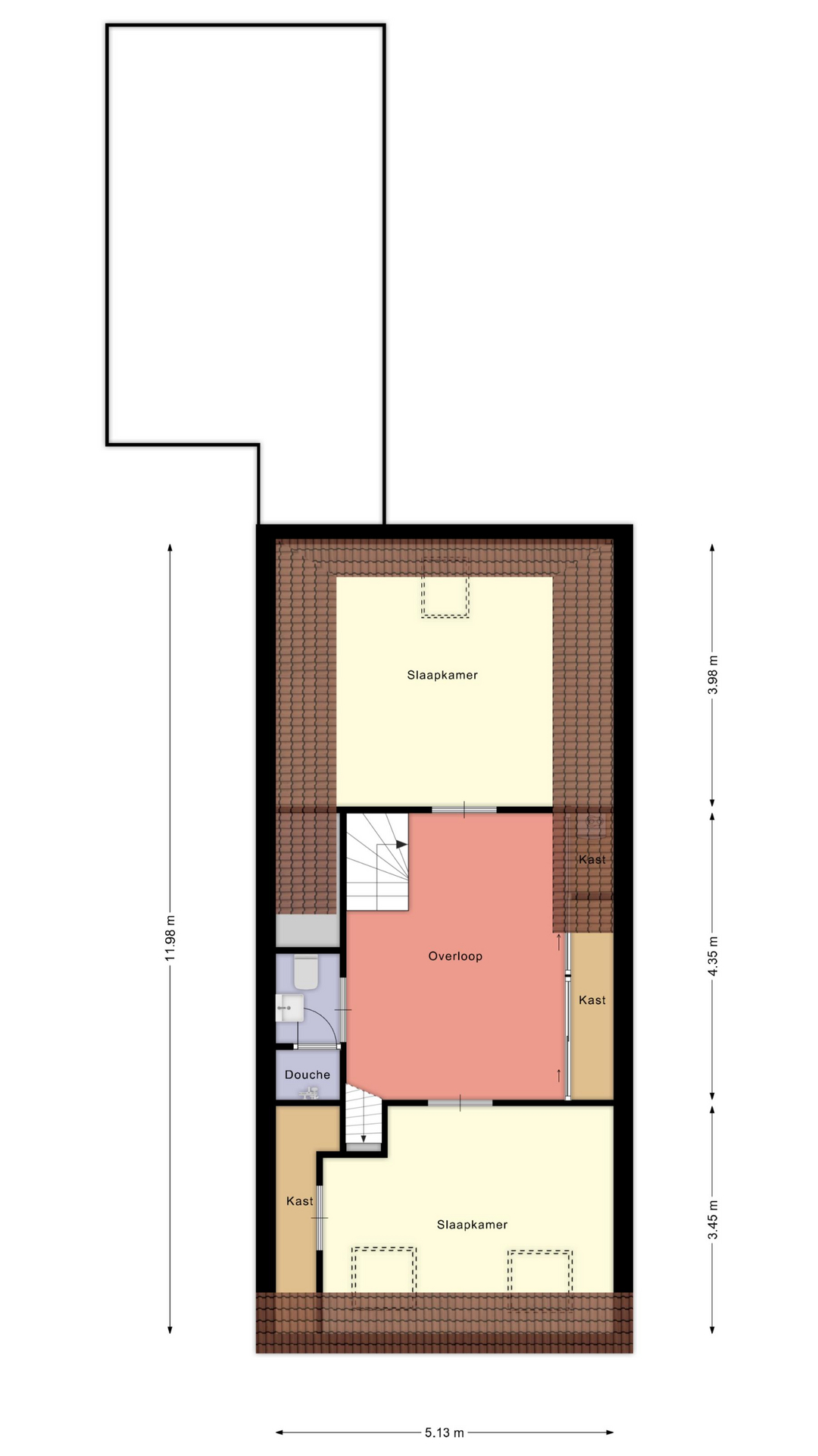 Op deze verdieping vind je bovendien een aparte doucheruimte, zodat je ook boven over sanitair beschikt. Dat maakt het huis extra comfortabel, zeker met een gezin of wanneer je regelmatig gasten ontvangt.