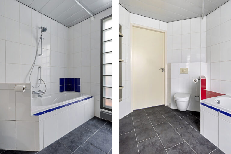 De badkamer is compleet en voorzien van een ligbad, douche, wastafelmeubel en toilet. Een bijkomend voordeel is het separate toilet in de hal.