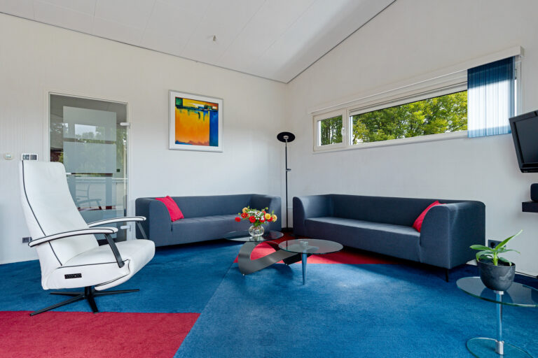 De woonkamer is het hart van de woning en heeft veel ruimte en licht. Dankzij de grote raampartijen en de hoge plafonds voelt de kamer direct open aan, terwijl de speelse indeling zorgt voor een gezellige sfeer. Met zijn royale afmetingen is er volop plaats voor zowel een comfortabele zithoek als een aparte werk- of leesplek.