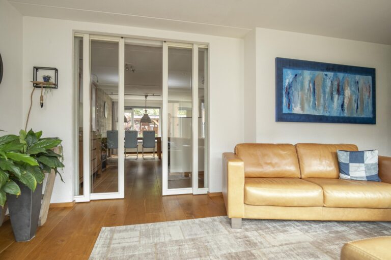 -Royale woonkamer met houten vloer & en-suite deuren