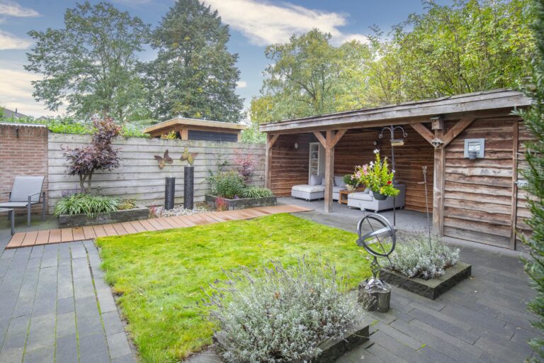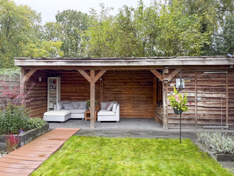 -Zonnige achtertuin op westen met overkapping/ berging