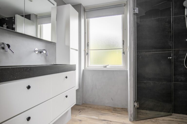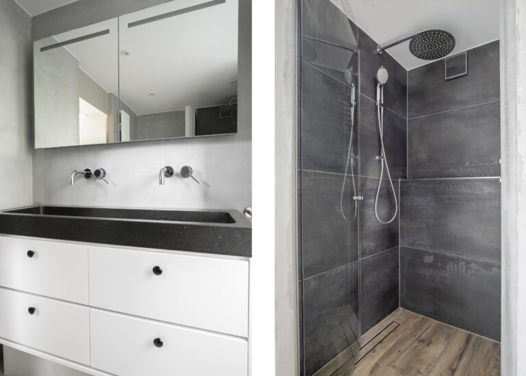 Drie slaapkamers en badkamer met toilet, douche, wastafelmeubel én vloerverwarming.
