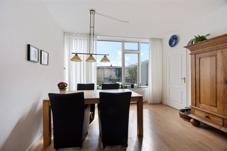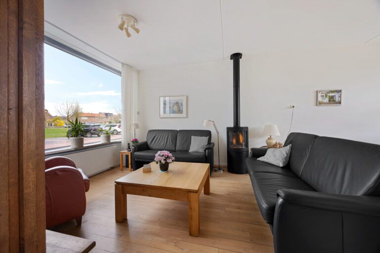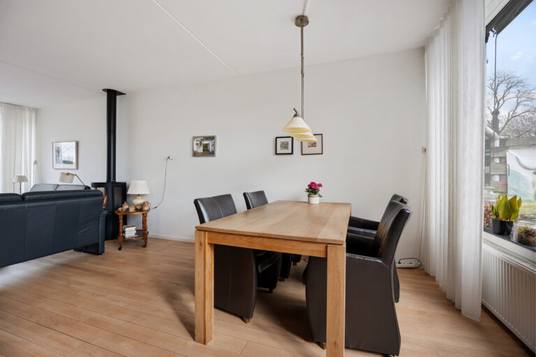 De woonkamer is prettig ingedeeld en profiteert volop van lichtinval en het vrije uitzicht aan de voorzijde. Door de fijne breedte en indeling is er ruimte voor zowel een comfortabele zithoek als een gezellige eethoek. De verbinding met buiten en het zicht op groen maken dit een bijzonder fijne leefruimte. Daarnaast wordt de woning extra verwarmd door middel van de gaskachel.