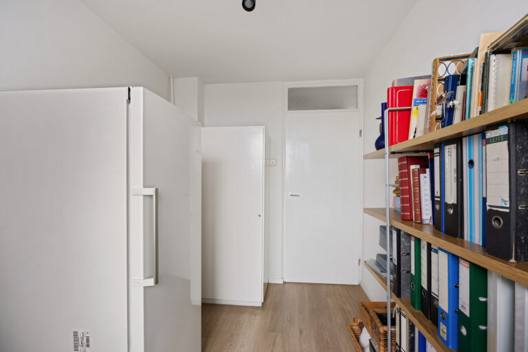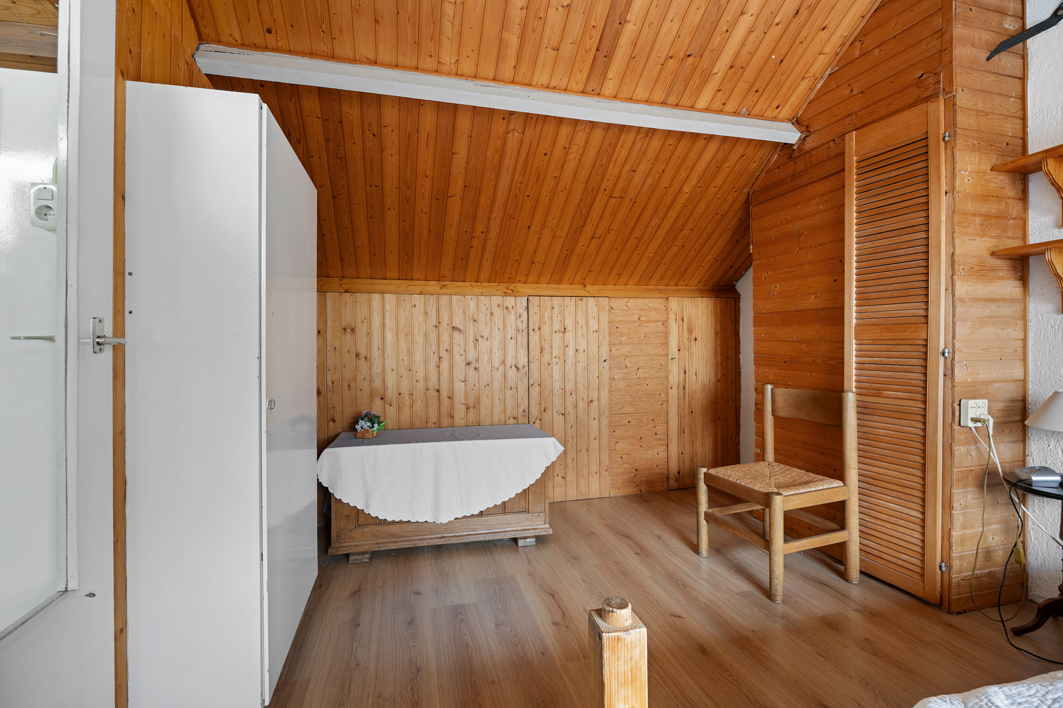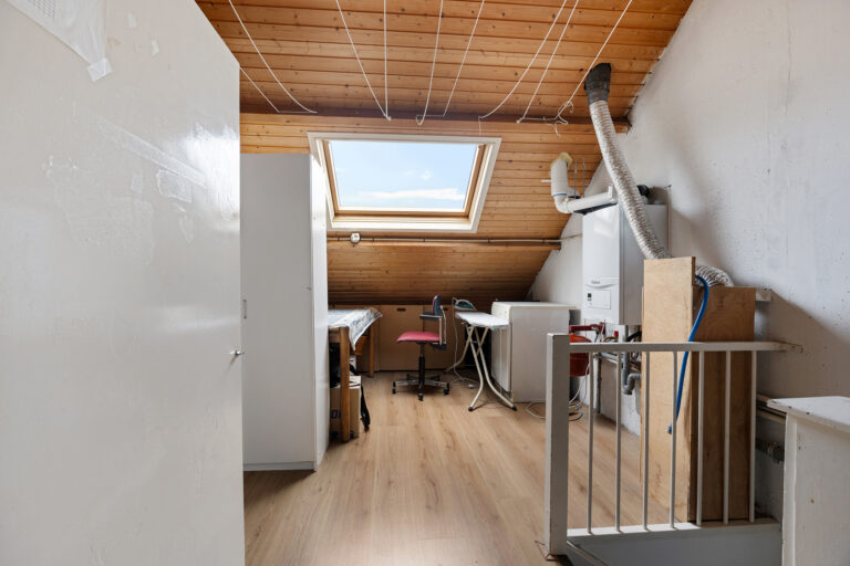 Via een vaste trap bereik je de tweede verdieping. Hier vind je extra ruimte die zich uitstekend leent als slaapkamer, werkplek of bergruimte.