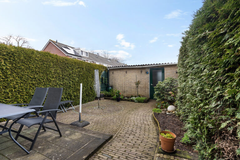 De tuin biedt een fijne plek om te ontspannen en te genieten van de rust. Dankzij de vrije ligging ervaar je hier volop privacy. Of je nu wilt tuinieren, loungen of buiten eten: hier kan het allemaal. De berging biedt plaats voor tuingereedschappen en fietsen.
