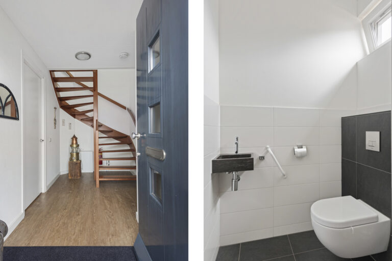 Bij binnenkomst via de voordeur betreed je de ruime en lichte hal/entree, waar direct de fijne sfeer van de woning voelbaar is. Vanuit deze centrale ruimte leidt de trap naar de eerste verdieping en heb je toegang tot alle belangrijke vertrekken op de begane grond. Zo bereik je de royale woonkamer met open keuken, de comfortabele slaapkamer op de begane grond, de moderne badkamer en de separate toiletruimte. De slaapkamer beschikt over een schuifwandkast. De badkamer is ruim opgezet en voorzien van een grote inloopdouche, vloerverwarming, extra radiator en een wastafelmeubel. Een praktische en doordachte indeling die zorgt voor optimaal wooncomfort.