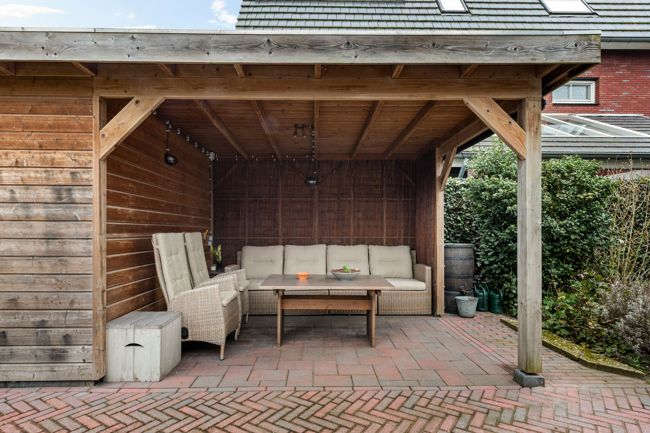 – Schuur en overkapping in achtertuin