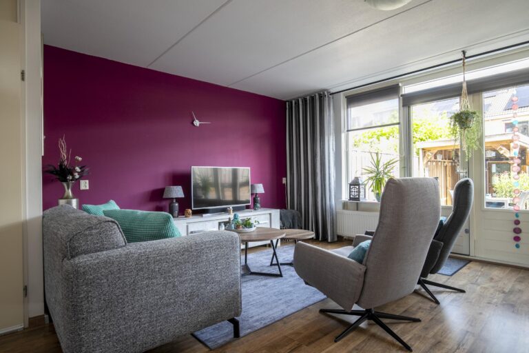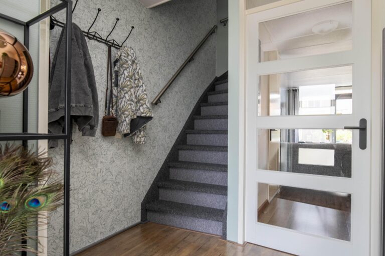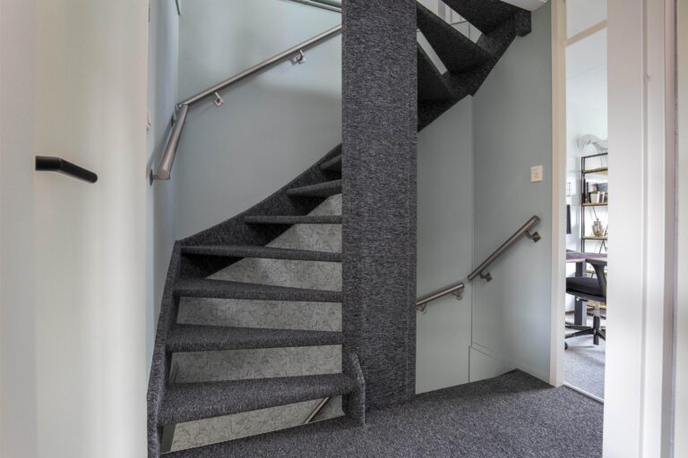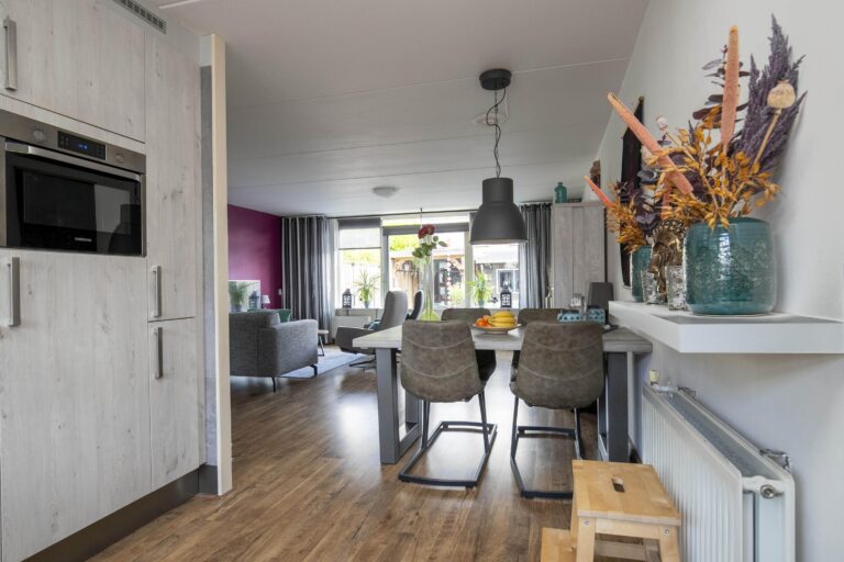 Je komt de woning aan de voorzijde binnen. In de ruime hal bevinden zich het toilet, de meterkast en de trapopgang. De woonkamer is heerlijk licht en ruim, met aansluitend de moderne, open keuken. De wanden zijn strak afgewerkt en de vloer geeft de ruimte een warme uitstraling.