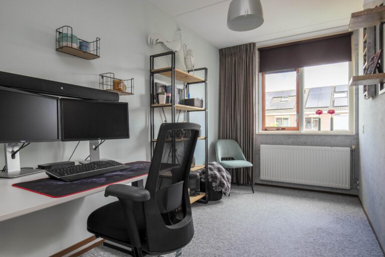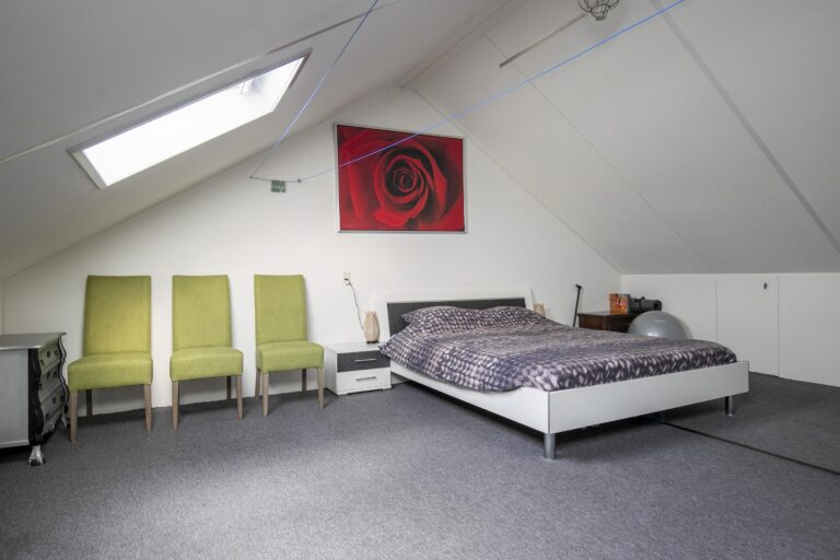 Op zolder vind je genoeg ruimte om een vierde slaapkamer te realiseren. Hier zijn ook de CV-ketel en wasmachine- en drogeraansluiting gesitueerd. Achter de knieschotten is handige bergruimte beschikbaar.