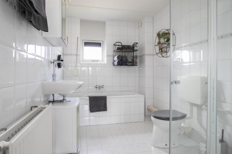 De overloop biedt toegang tot drie slaapkamers en de badkamer. De badkamer is heerlijk licht en voorzien van alle gemakken; een ligbad, aparte douche, wastafel en tweede toilet.