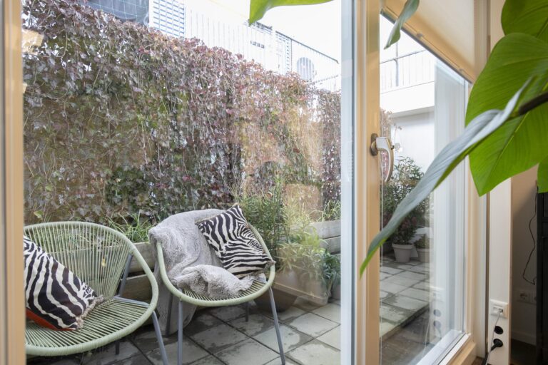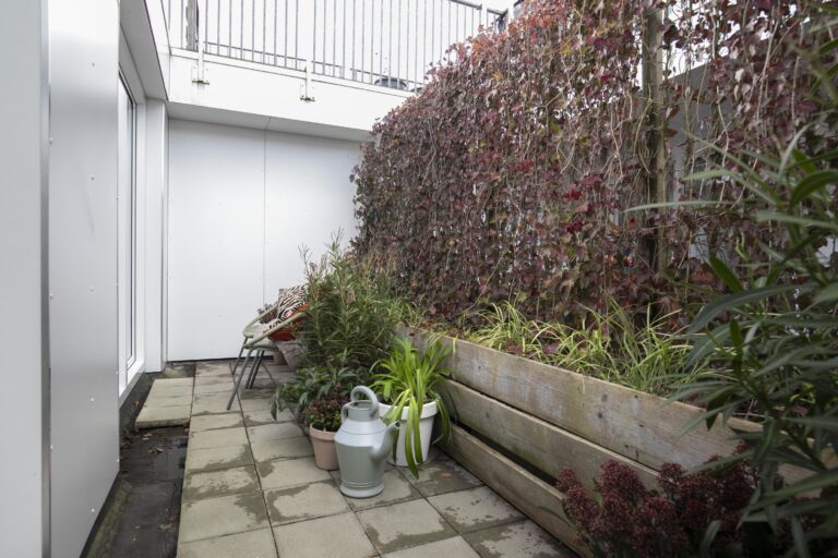 De woning beschikt daarnaast over een besloten buitenruimte aan de achterzijde – ideaal als stadstuin, patio of zonnige zitplek.
