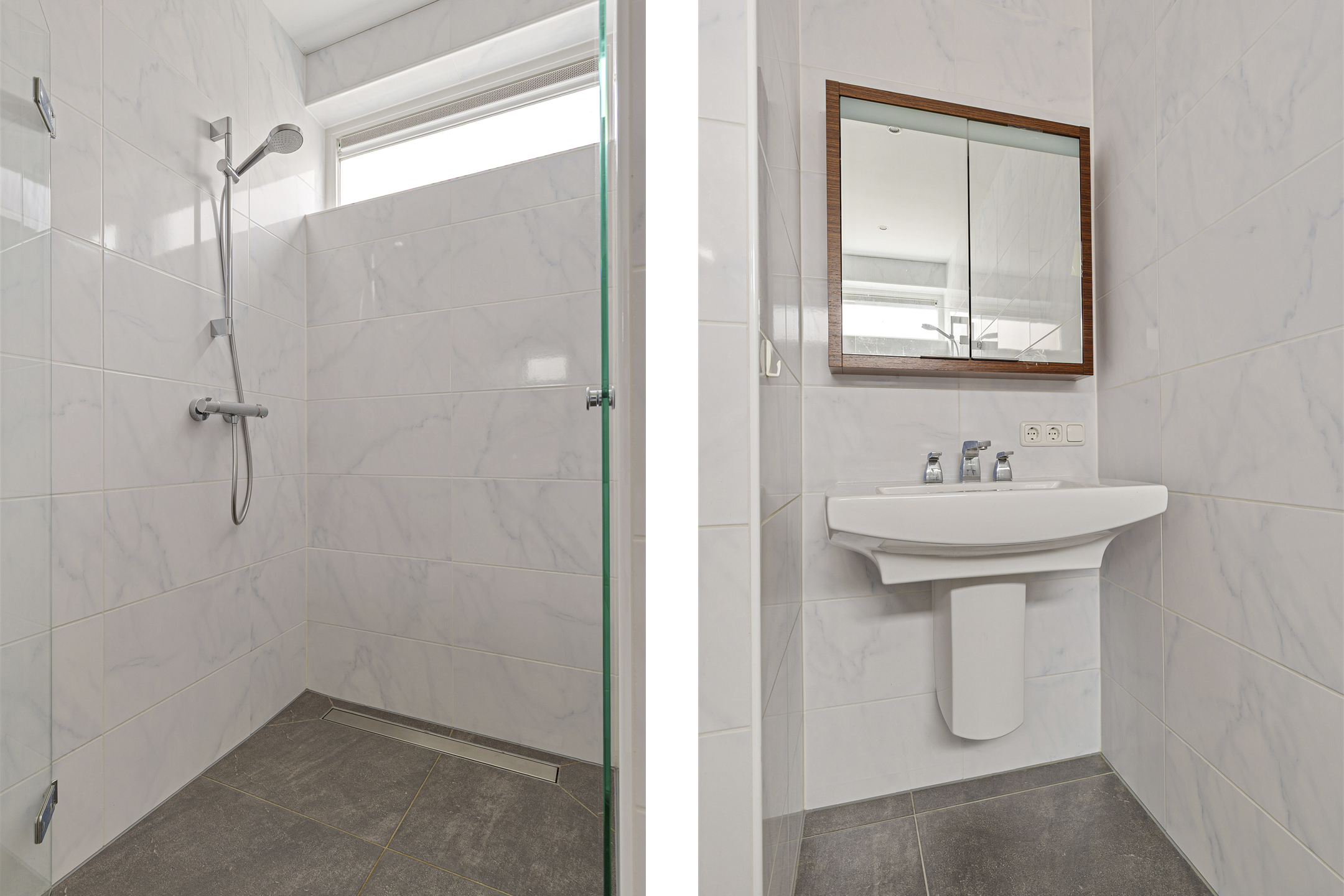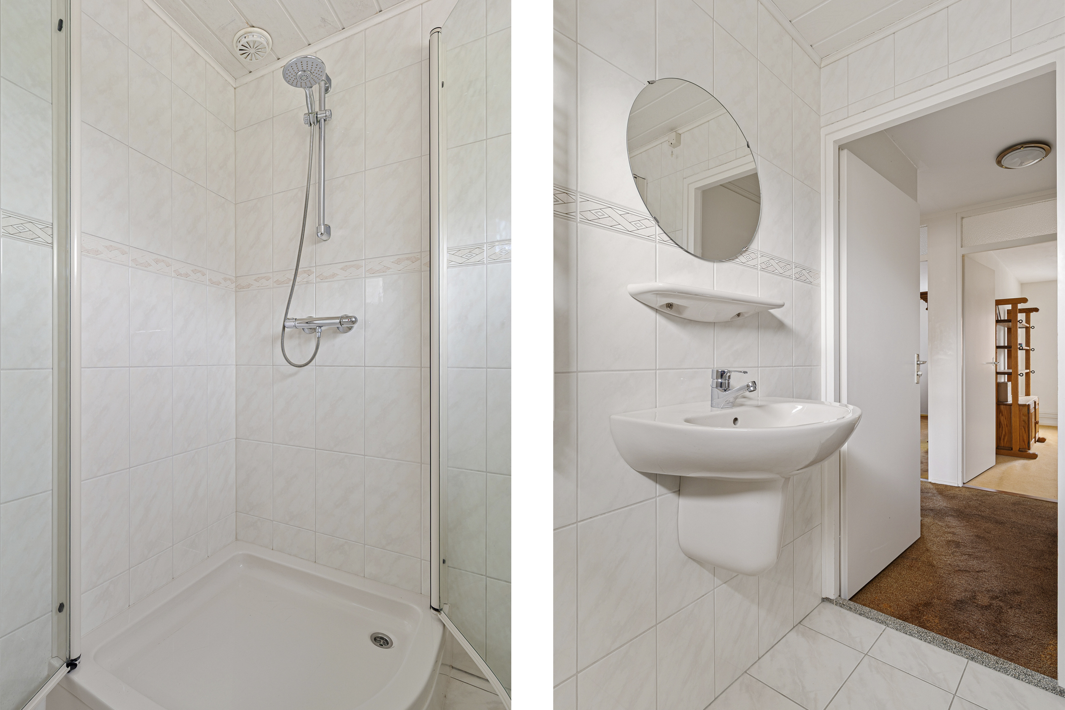 Op de eerste verdieping zijn drie slaapkamers gesitueerd, bereikbaar vanaf de overloop. Twee slaapkamers beschikken over een vaste kast en ook vanaf de overloop is een vaste kast toegankelijk voor extra opbergruimte. De badkamer bevindt zich aan de voorzijde van de woning en is uitgerust met een wastafel, toilet en douche.