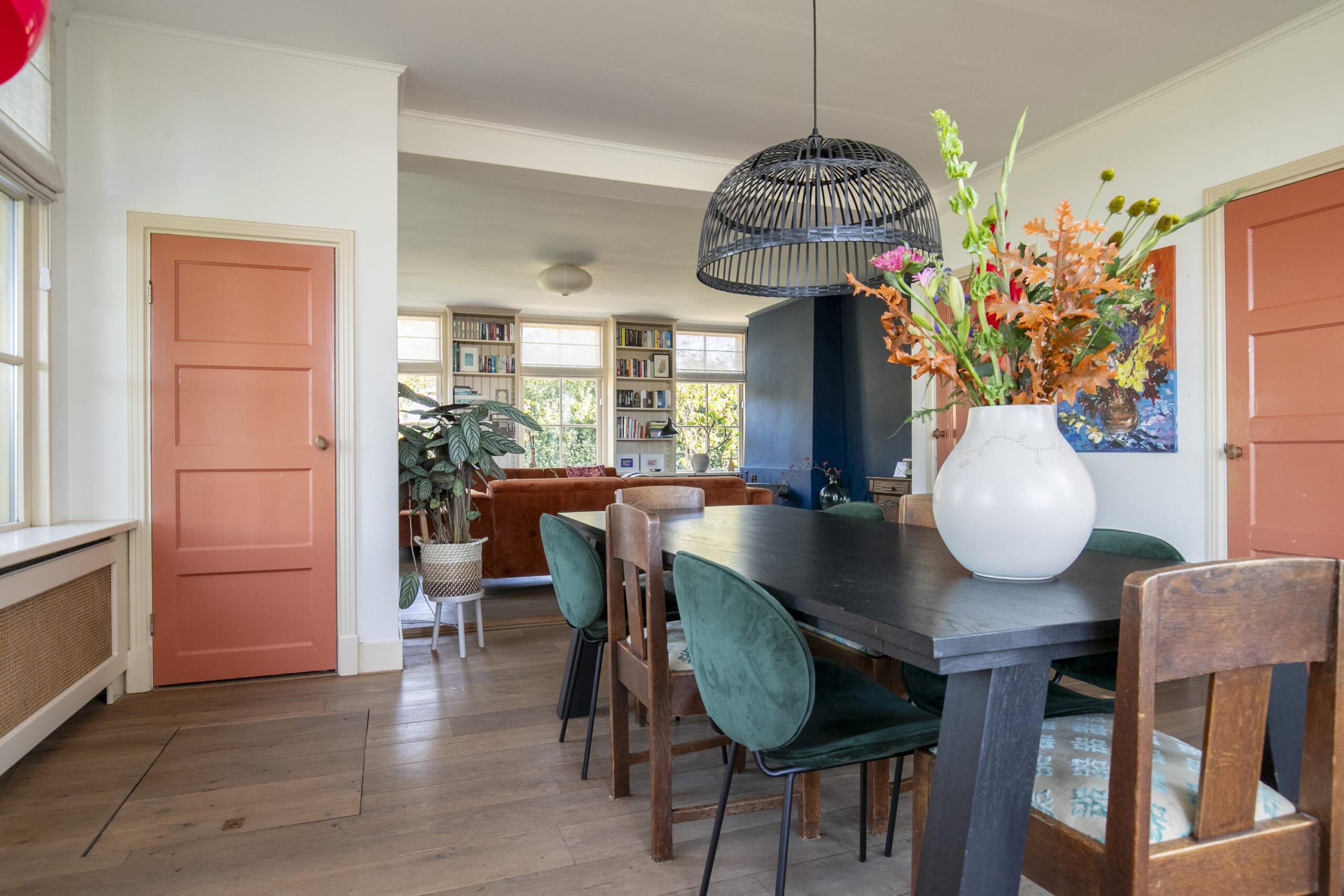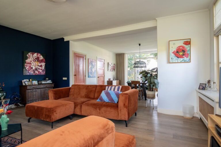 Bij binnenkomst voel je direct de ruime indeling. Vanuit de hal loop je door naar de royale woonkamer, die de volledige breedte van het huis beslaat. Grote ramen rondom zorgen voor veel lichtinval en geven een prachtig uitzicht op zowel de tuin als de omgeving. De woonkamer is ruim genoeg voor meerdere zitgedeeltes, een grote eettafel en een gezellige zithoek.
