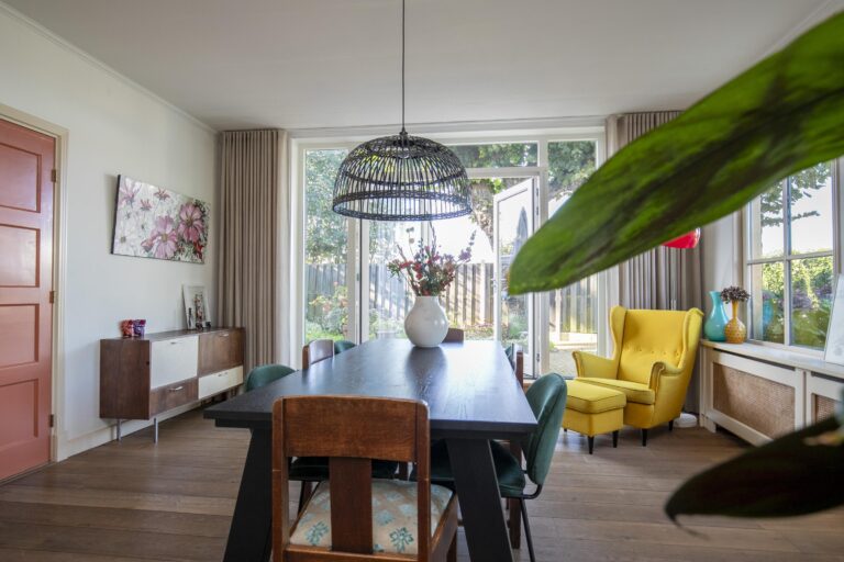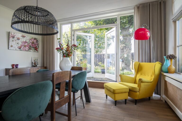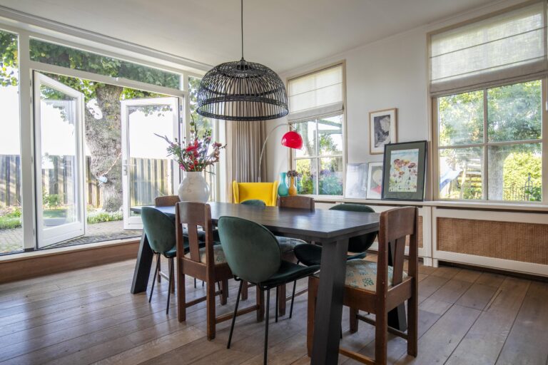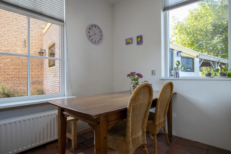 Naast de keuken is er ruimte voor een gezellige eethoek, waar je met uitzicht op de tuin geniet van je ontbijt of een ontspannen diner met het gezin.