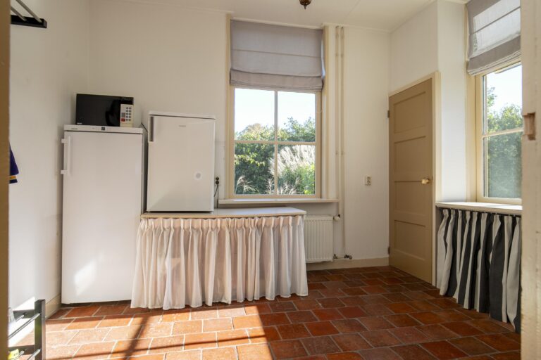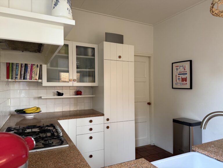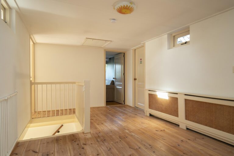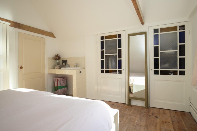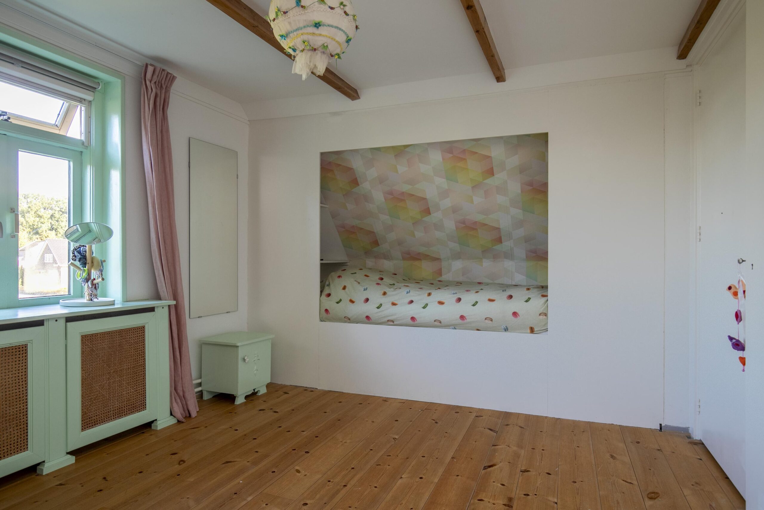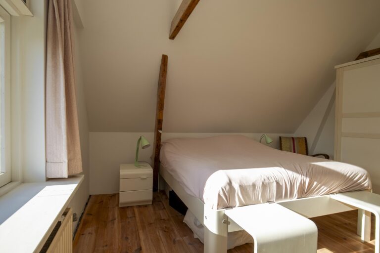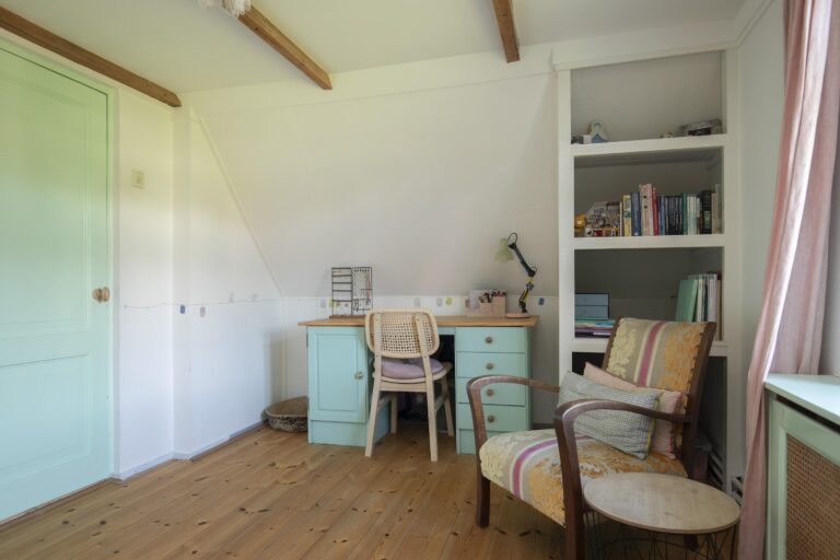 Daarnaast vind je op deze verdieping meerdere vaste kasten en zelfs een klassieke bedstee, die het huis een speels en historisch accent geeft.