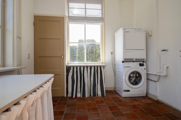 Via de tweede hal bereik je deze bijkeuken. Hier is plaats voor extra apparatuur, zoals een wasmachine en droger. De tweede hal beschikt daarnaast over een apart toilet en meerdere vaste kasten.