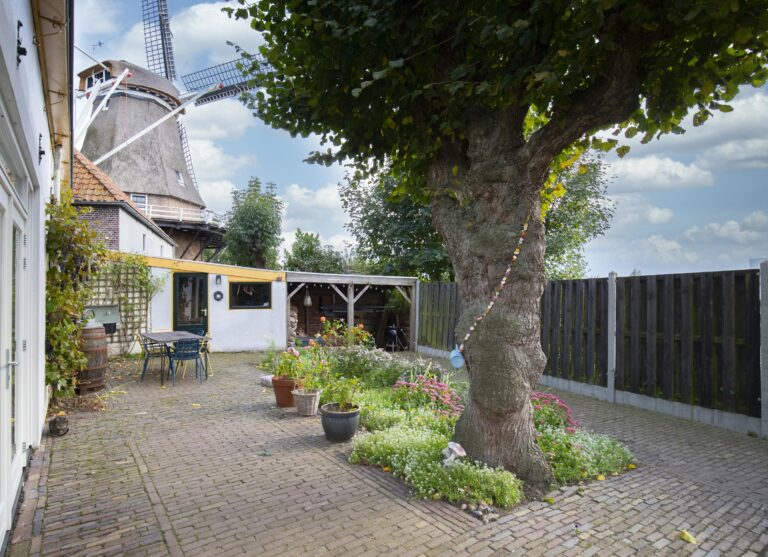 Er is volop ruimte om je groene vingers de vrije loop te laten. Of je nu droomt van een moestuin, een kruidentuin of meer sierbeplanting: de mogelijkheden zijn eindeloos. Wat deze tuin extra bijzonder maakt, is de combinatie van groen, ruimte en uitzicht. Terwijl je geniet van je eigen privéplek, heb je overal zichtlijnen richting de dijk, de weilanden en natuurlijk de molen. Dit is een plek waar je elke dag opnieuw beseft hoe bijzonder het is om hier te wonen.