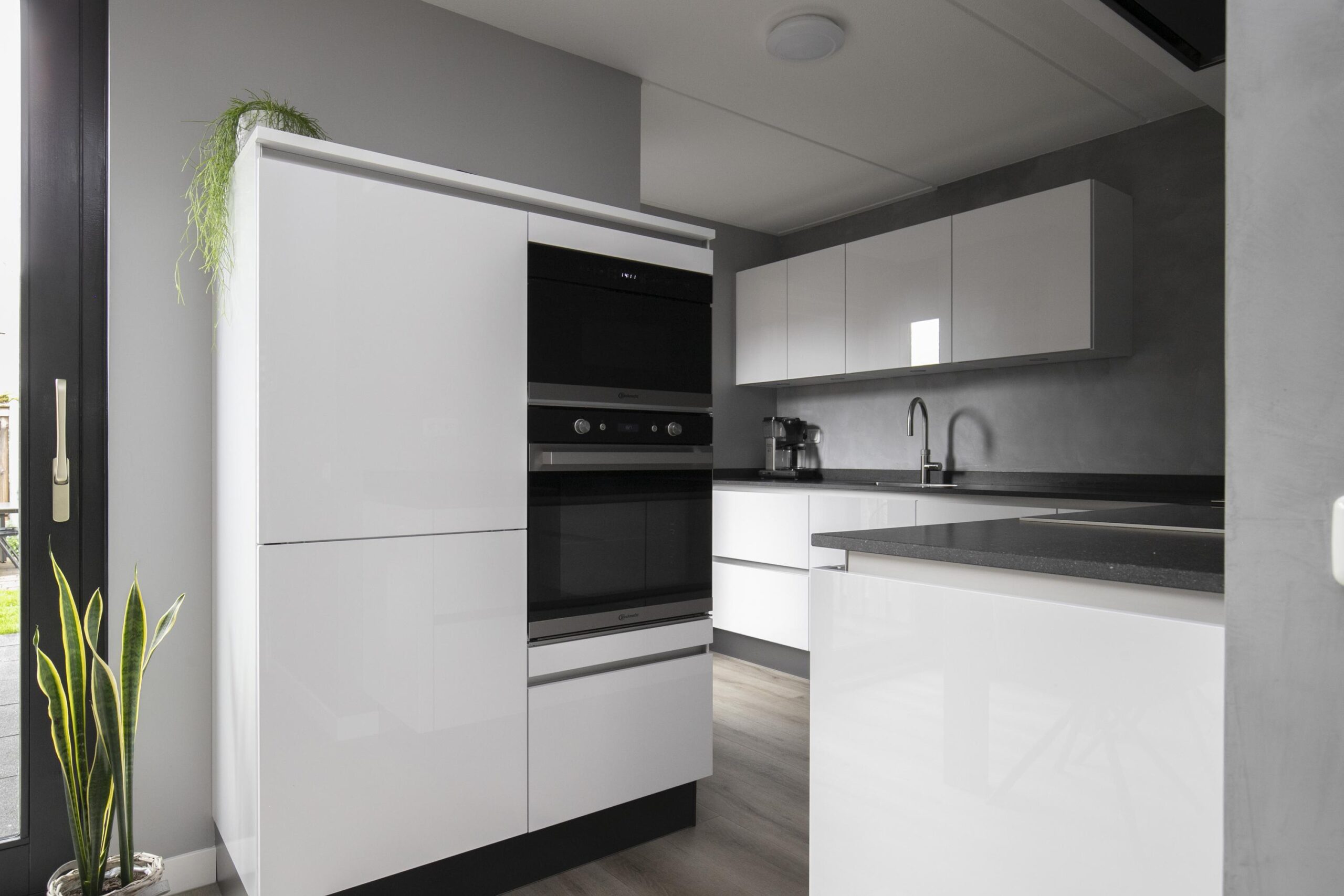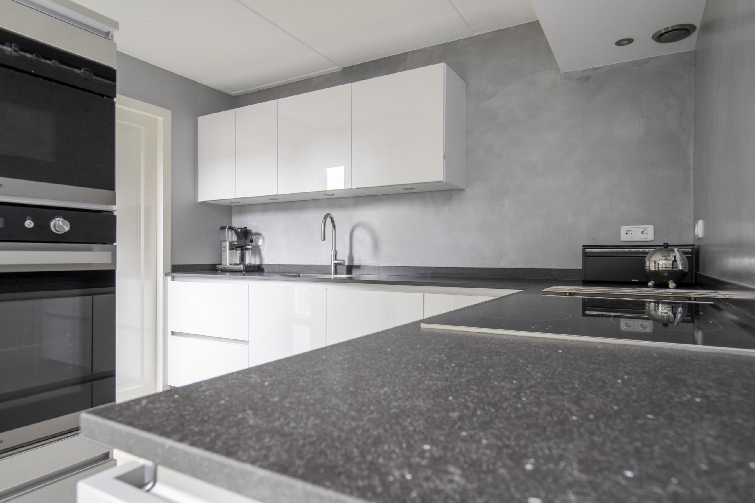 Aan de tuinzijde ligt de moderne open keuken (2018), uitgerust met een schuifpui naar de tuin en voorzien van alle denkbare inbouwapparatuur: inductiekookplaat, Quooker, magnetron, oven, koelkast, vaatwasser en afzuigkap. Dankzij de strakke afwerking en de praktische indeling is dit een heerlijke plek voor kookliefhebbers. Dankzij de schuifpui in de keuken is er een mooie verbinding tussen binnen en buiten.