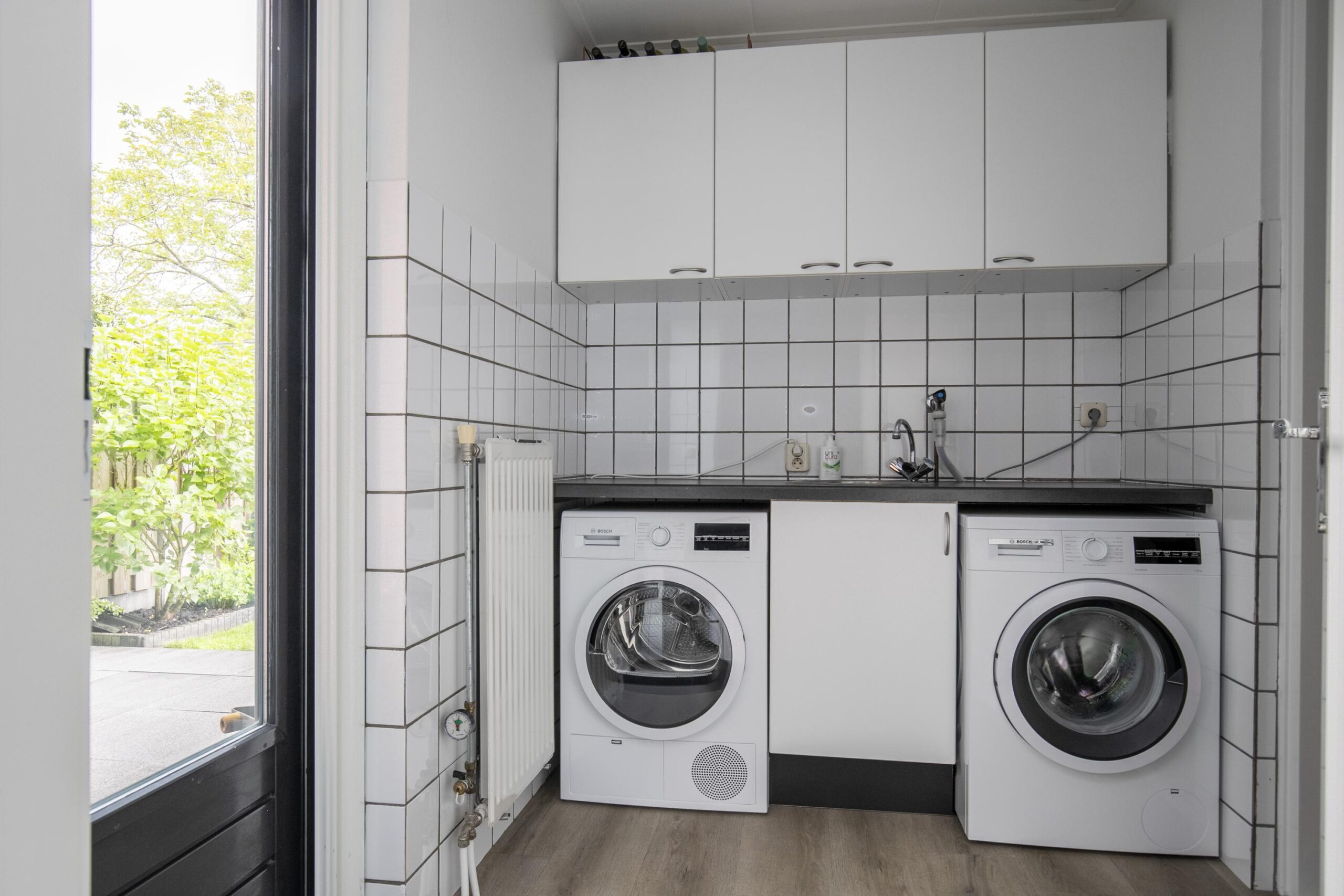 Aangrenzend bevindt zich de bijkeuken, ideaal als wasruimte en extra bergruimte. Vanuit hier is er toegang tot de ruime garage welke deels is nageïsoleerd. Hierdoor biedt de garage volop mogelijkheden voor hobby’s, opslag of het stallen van fietsen. In de garage staat de waterontharder (Ecosytem, 2010), die zorgt voor zacht en kalkvrij water. Dit betekent minder kalkaanslag, een langere levensduur van apparaten en meer comfort in huis.
