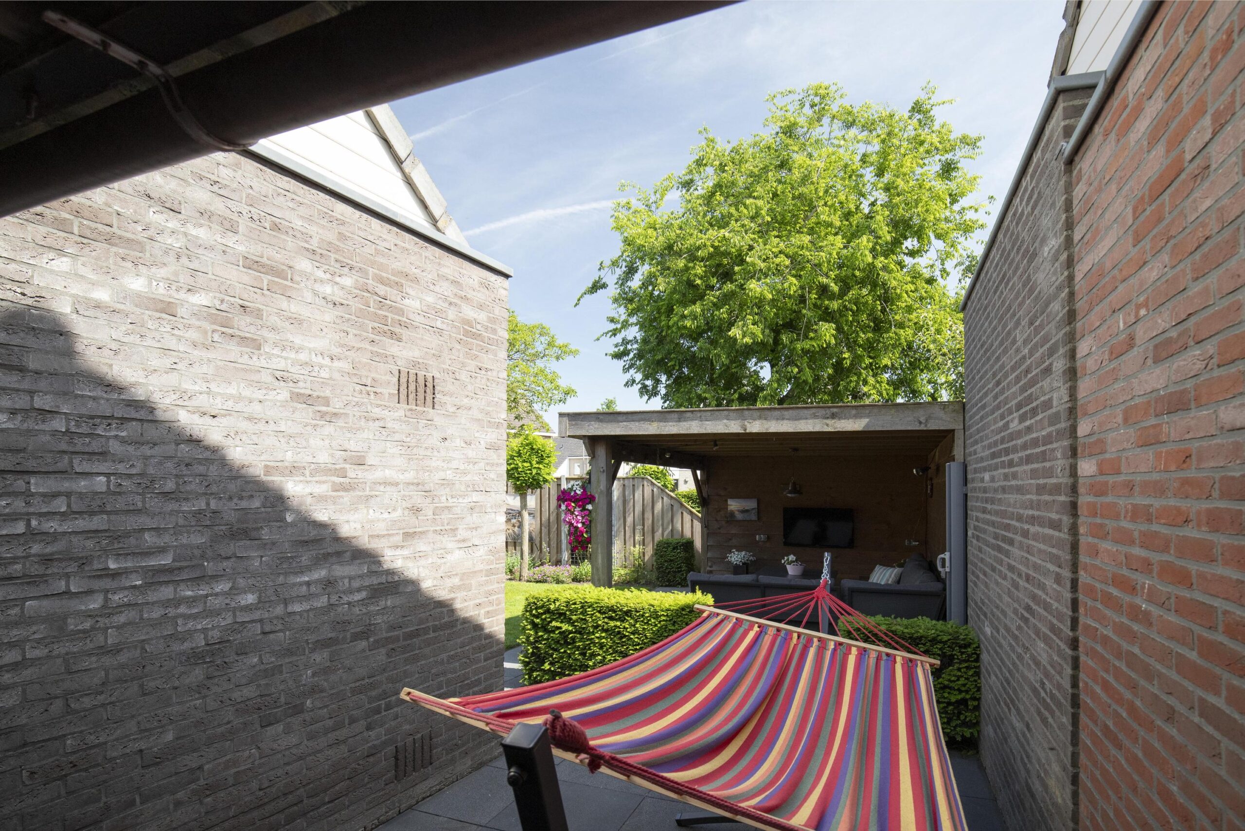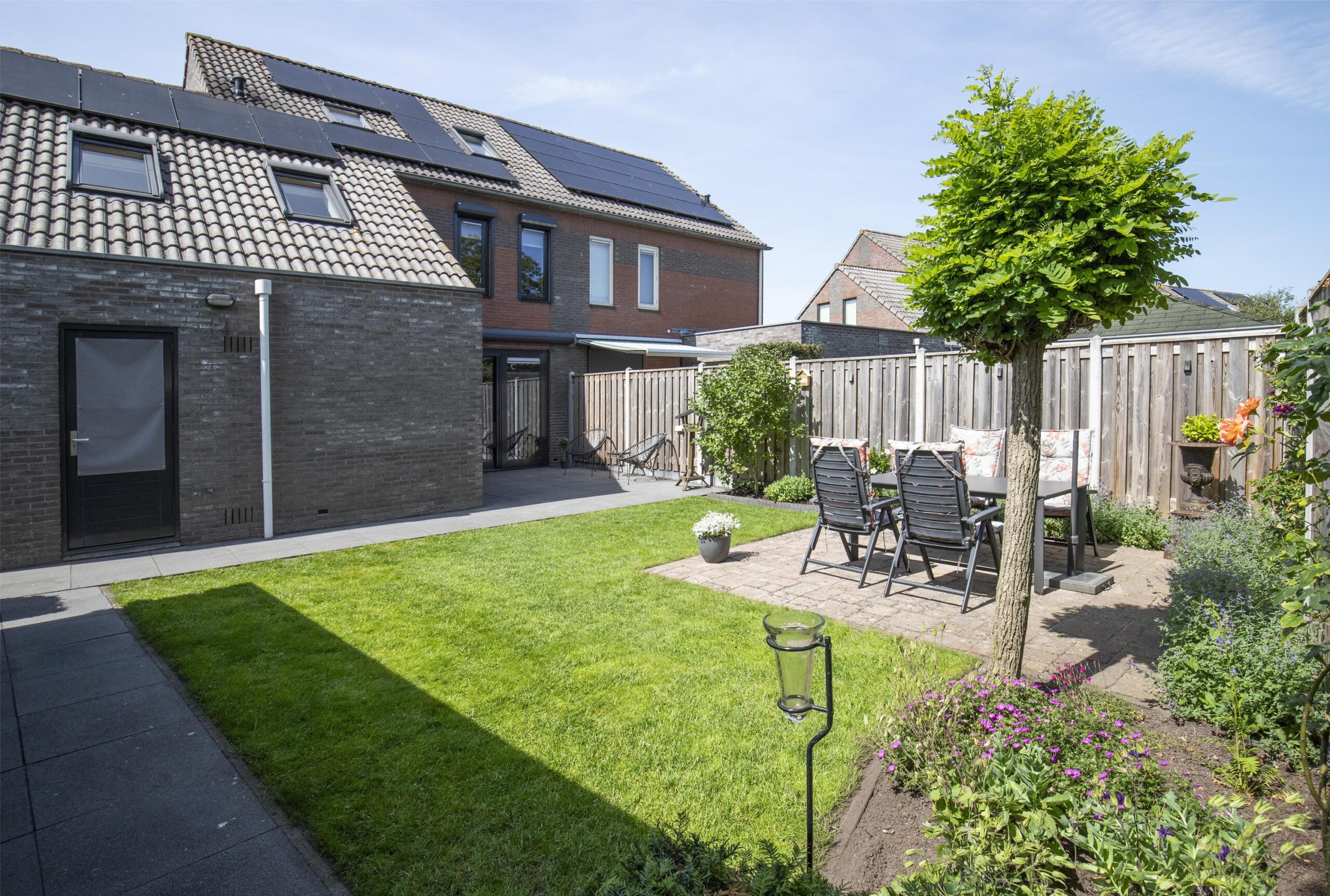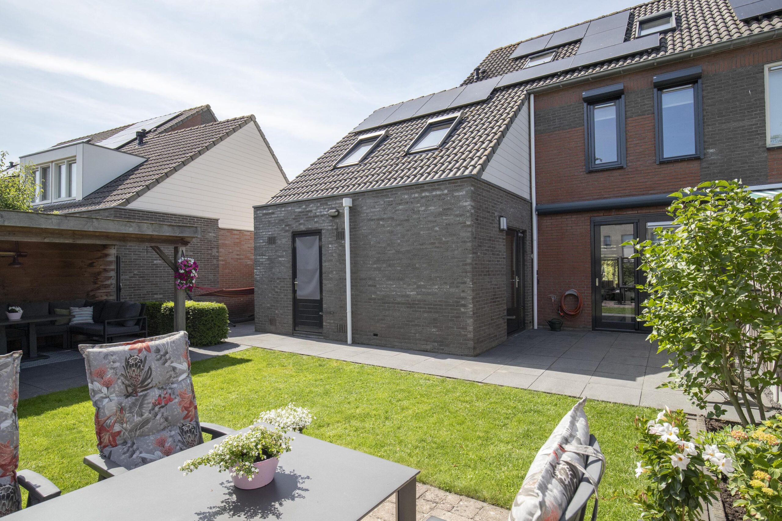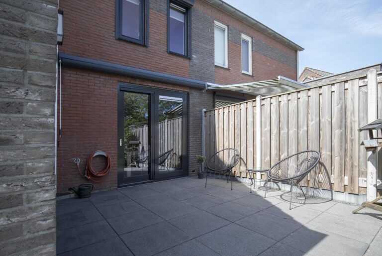 De verzorgde en zonnige achtertuin is gelegen op het zuidoosten en heeft een extra brede opzet, waardoor er volop ruimte is voor zowel een gezellig terras als een speelgedeelte. De tuin is fraai aangelegd met een combinatie van een gazon, borders en een terras. Bovendien is er een sfeervolle veranda geplaatst, waardoor je hier het hele jaar door comfortabel buiten kunt zitten. De berging zorgt voor ruimte voor het opslaan van de tuinbenodigdheden.