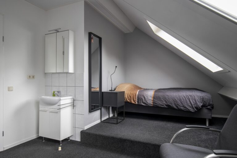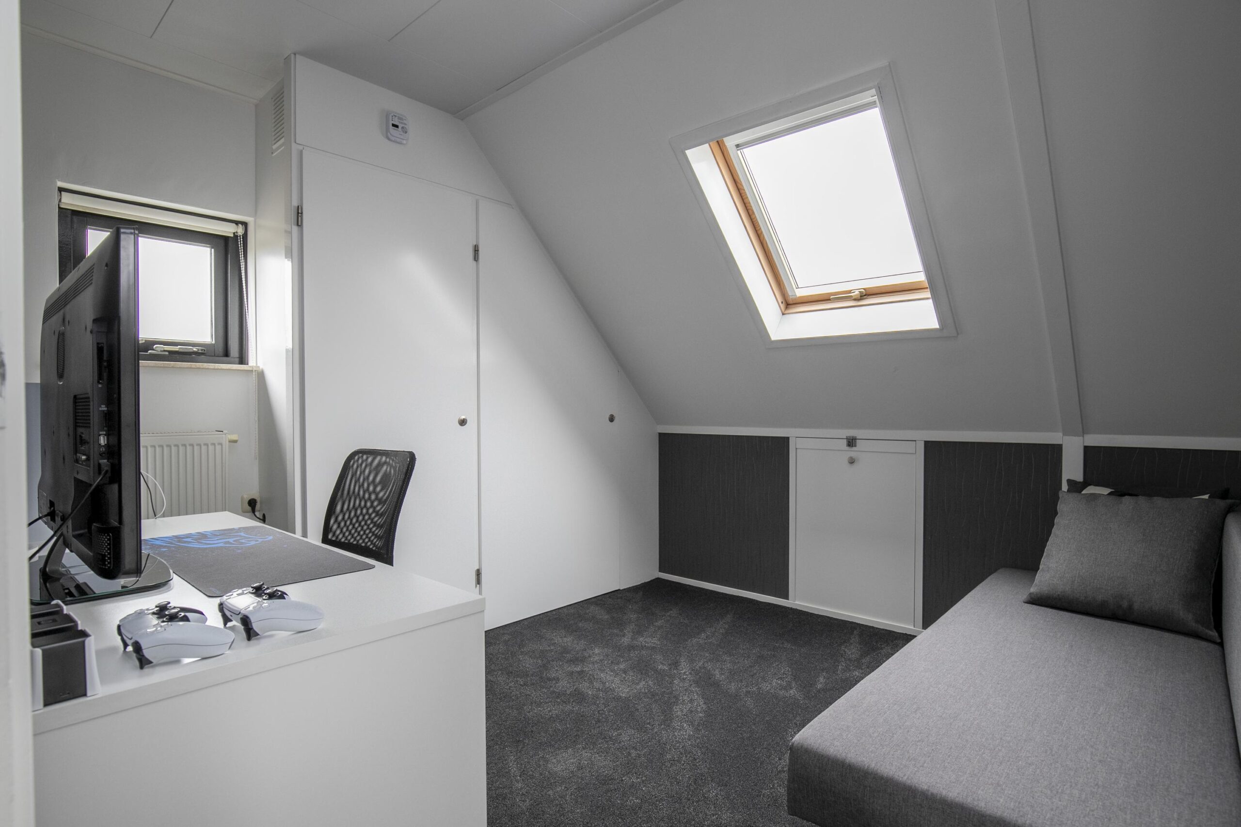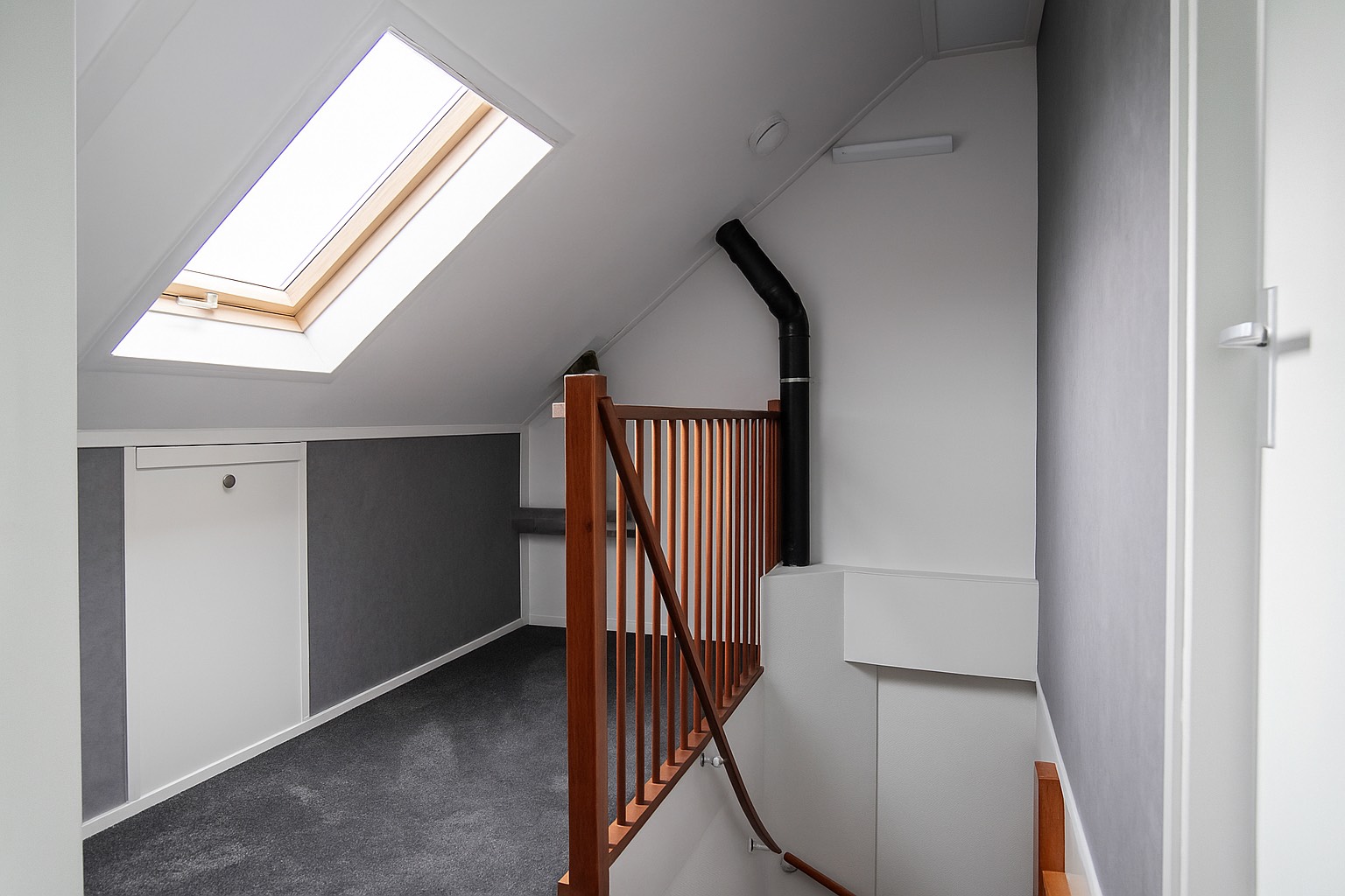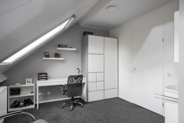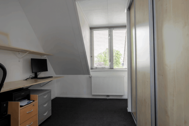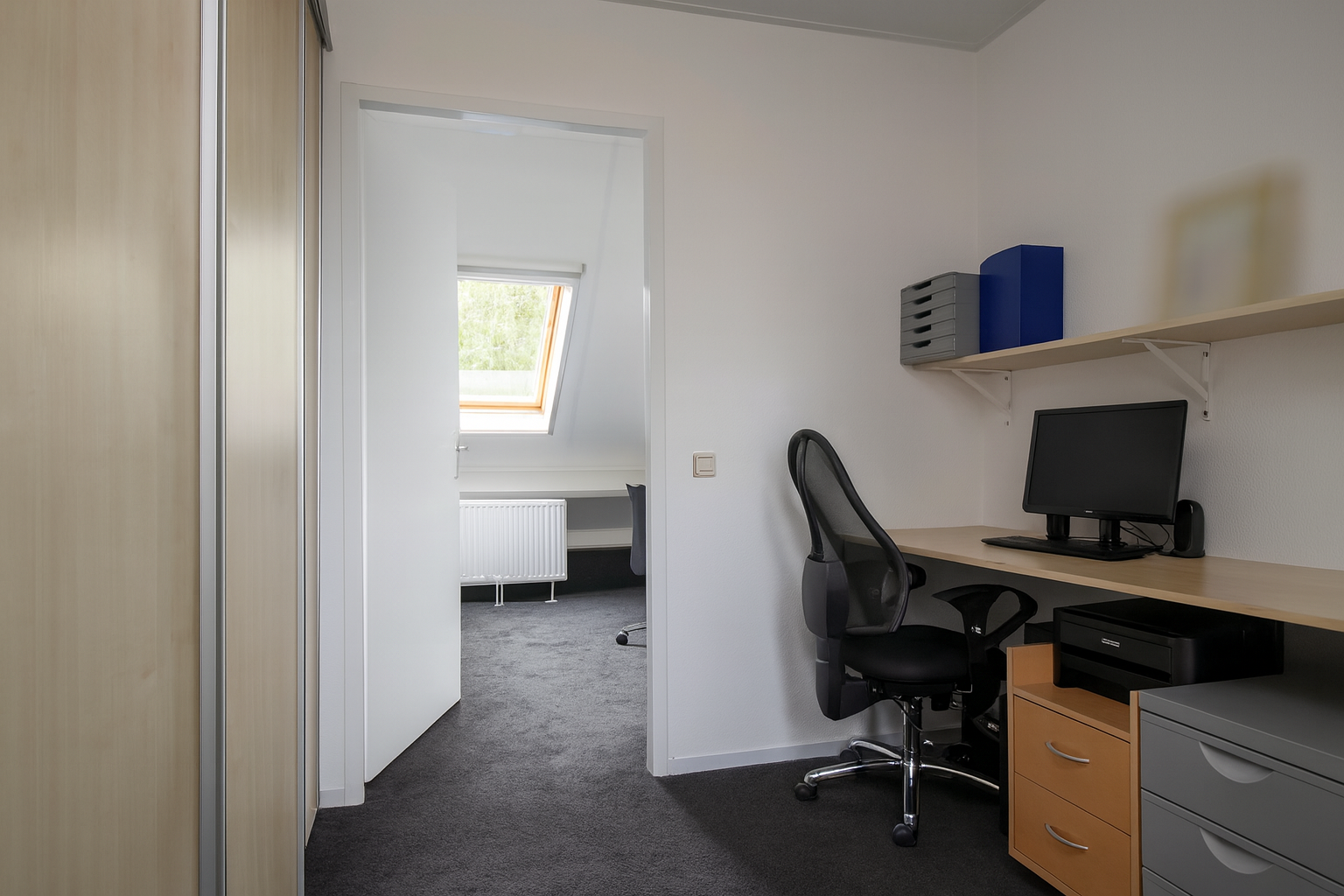 Via de overloop zijn drie ruime slaapkamers te bereiken, ideaal in te richten als kinder-, logeer- of werkkamer. Dankzij de royale afmetingen bieden deze kamers veel mogelijkheden. De moderne badkamer (2021) is voorzien van vloerverwarming, een ligbad, inloopdouche, dubbele wastafel in meubel en toilet – een luxe plek om te ontspannen. In 2008 is er een dakopbouw geplaatst waardoor de woning aanzienlijk is vergroot. Deze opbouw op de garage herbergt een extra slaapkamer én een praktische kantoorruimte met vaste kast. Hierdoor beschikt de verdieping in totaal over vier slaapkamers en een aparte werkkamer, perfect voor grotere gezinnen of voor wie thuis wil werken. Via de werkkamer krijg je, door middel van een vlizotrap, toegang tot een praktische bergruimte. Ideaal voor het netjes opbergen van seizoensspullen, koffers of andere zaken die je niet dagelijks nodig hebt.