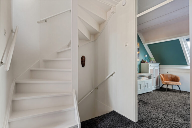 De vaste trap brengt je naar de vierde slaapkamer met dakkapel. Perfect als extra slaapkamer, hobbyruimte of thuiskantoor. Op deze verdieping vind je ook de cv-opstelling en de aansluiting voor de wasmachine.