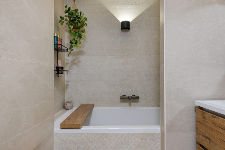 Vanaf de overloop bereik je drie slaapkamers, ideaal voor gezin, werkruimte of logees. De moderne badkamer is uitgerust met een ligbad, toilet en wastafelmeubel: een fijne plek om je dag ontspannen te beginnen of af te sluiten.
