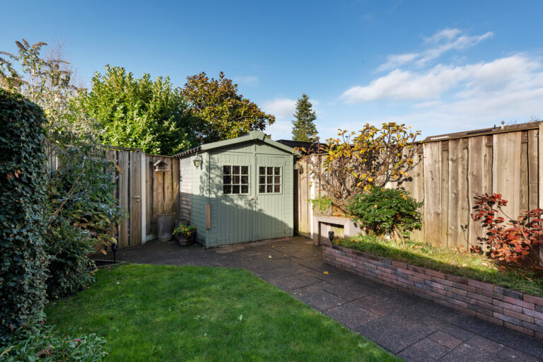 De achtertuin met achterom is een heerlijke plek om tot rust te komen. Of je nu houdt van barbecueën, tuinieren of lekker loungen—hier kun je alle kanten op. Aan de voorzijde heb je bovendien je eigen parkeerplek én een schuur voor extra opslag.