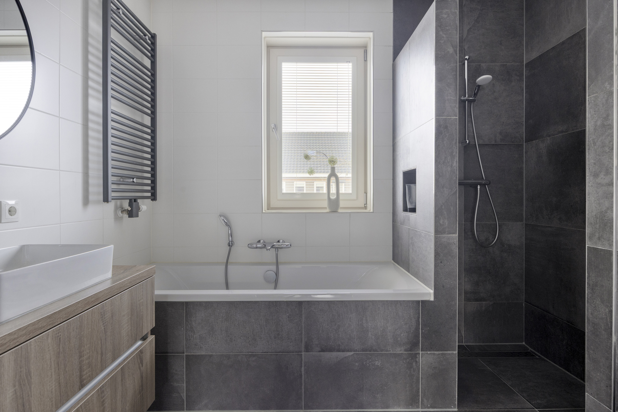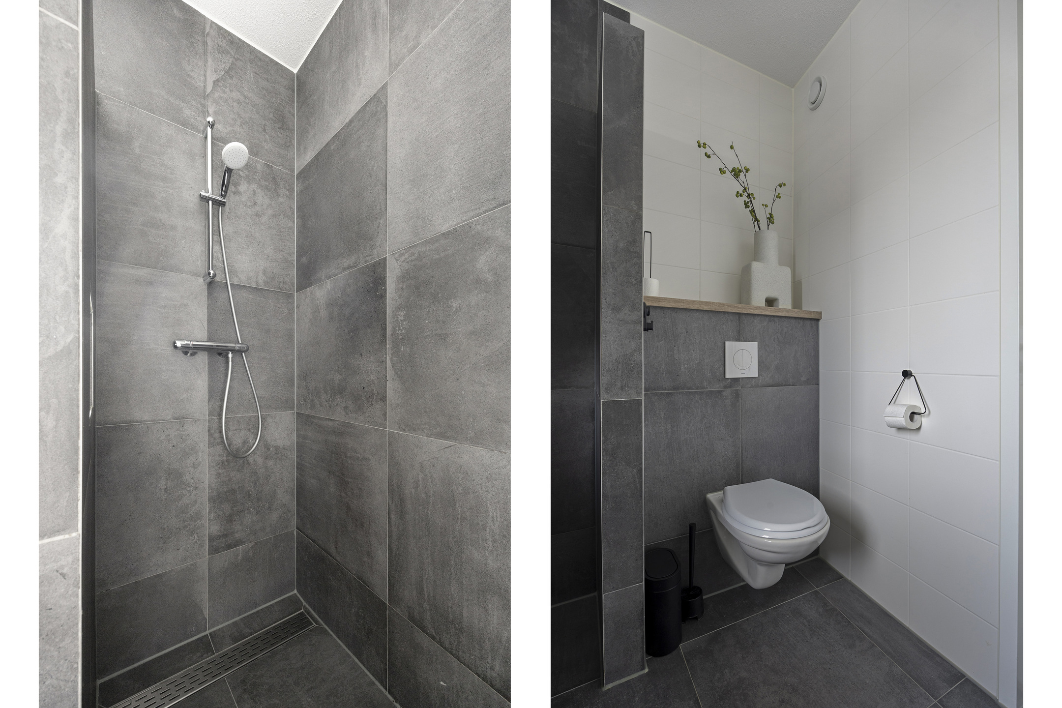 Op de eerste verdieping vind je 3 ruime slaapkamers en badkamer. Alle slaapkamers beschikken over rolluiken en horren. De badkamer is tijdens de bouw vergroot en voorzien van een ligbad, inloopdouche, toilet en wastafel. Ook in de badkamer is vloerverwarming aanwezig.
