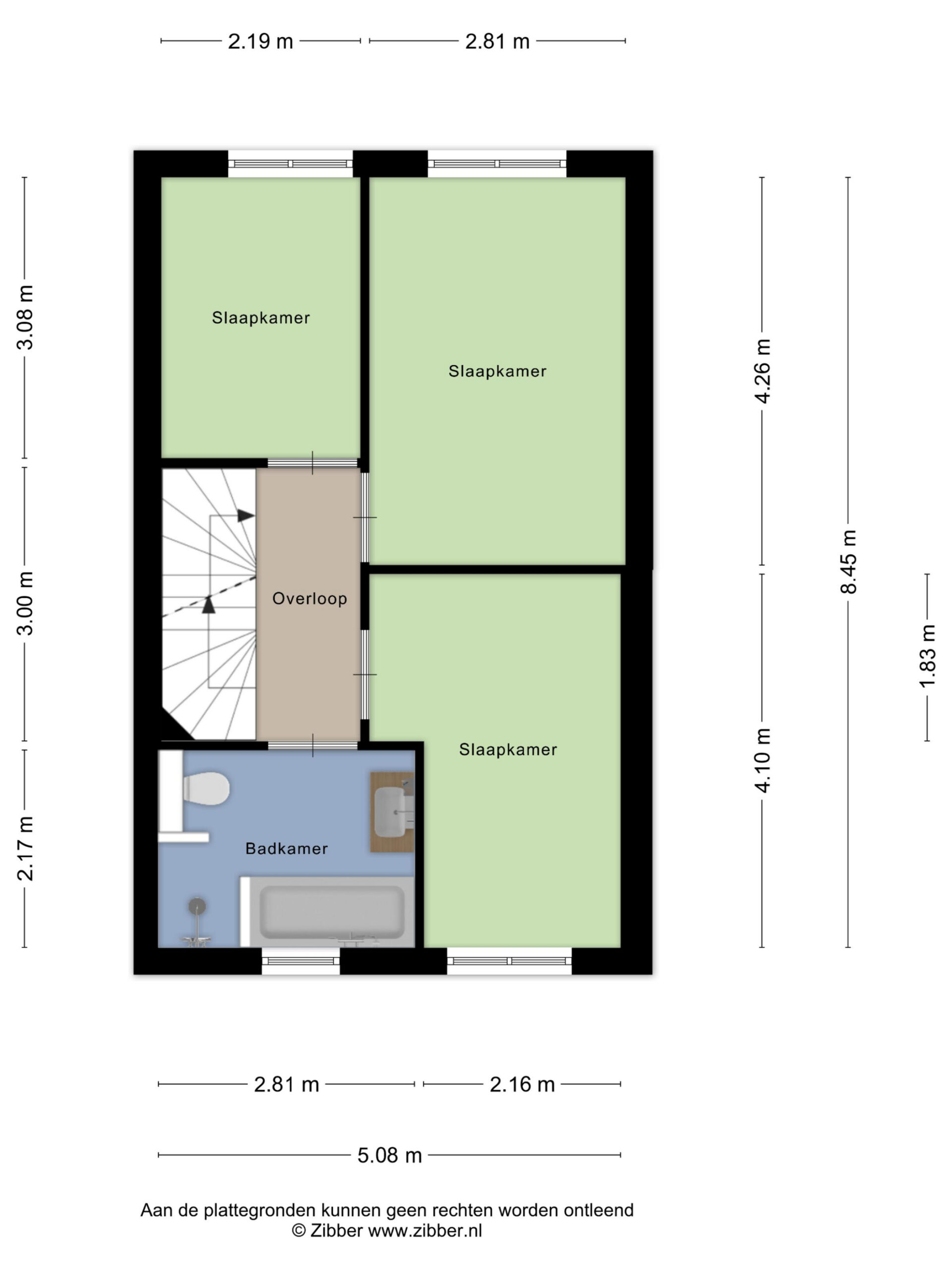 Overloop, 3 slaapkamers, badkamer.