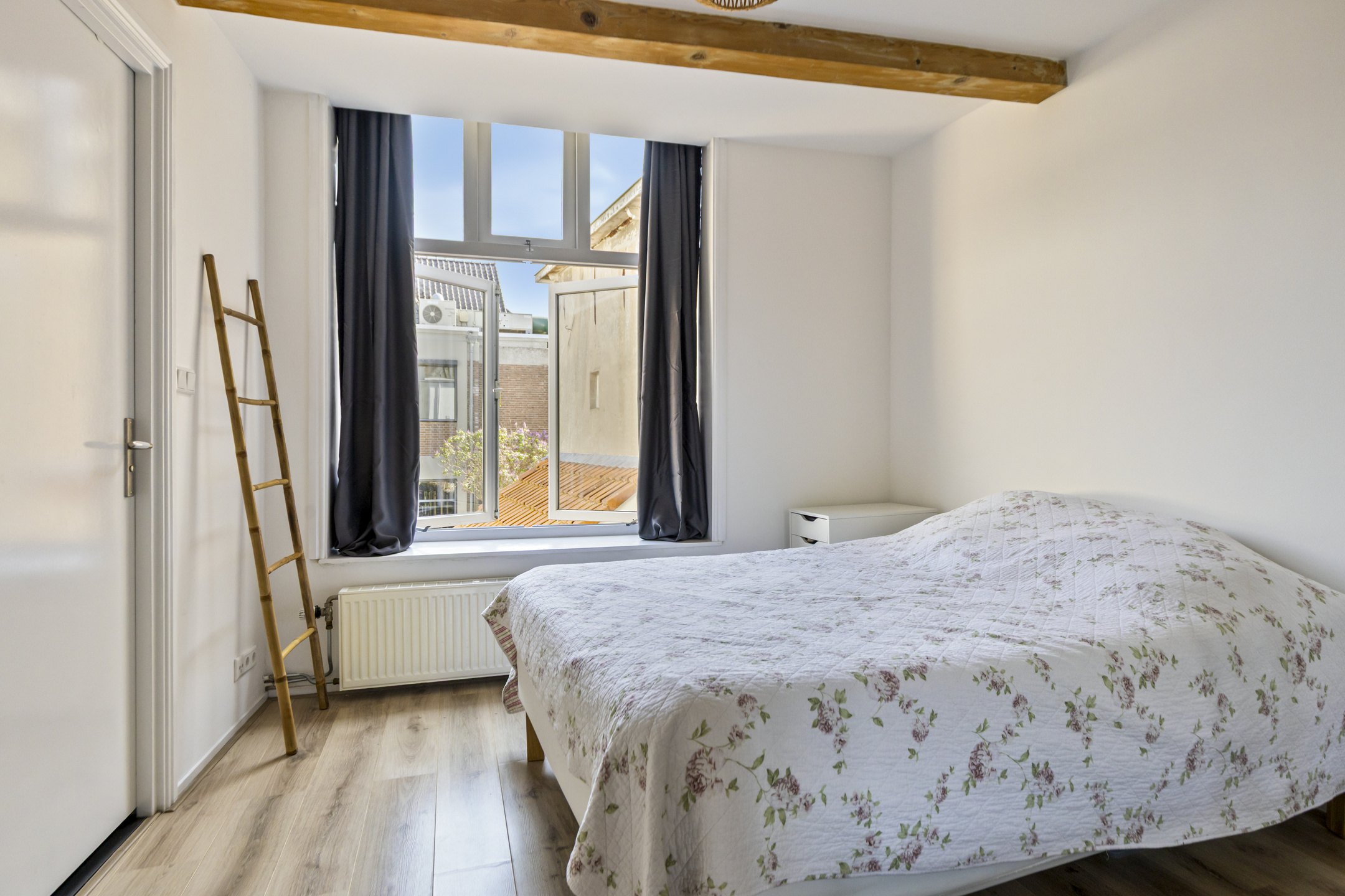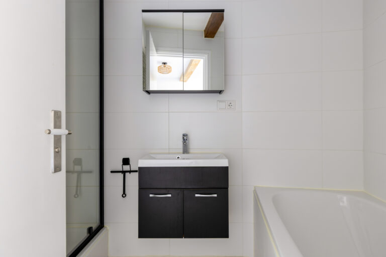 Binnen word je verwelkomd door een lichte, strak afgewerkte woonruimte met grote ramen die zorgen voor een fijne, open sfeer. De moderne open keuken is voorzien van inbouwapparatuur en sluit naadloos aan op het woongedeelte. Aan de rustige achterzijde vind je een ruime slaapkamer met een stijlvolle en-suite badkamer (2024), compleet met ligbad, douche en wastafel. Alles is keurig afgewerkt en helemaal klaar om zo te betrekken.