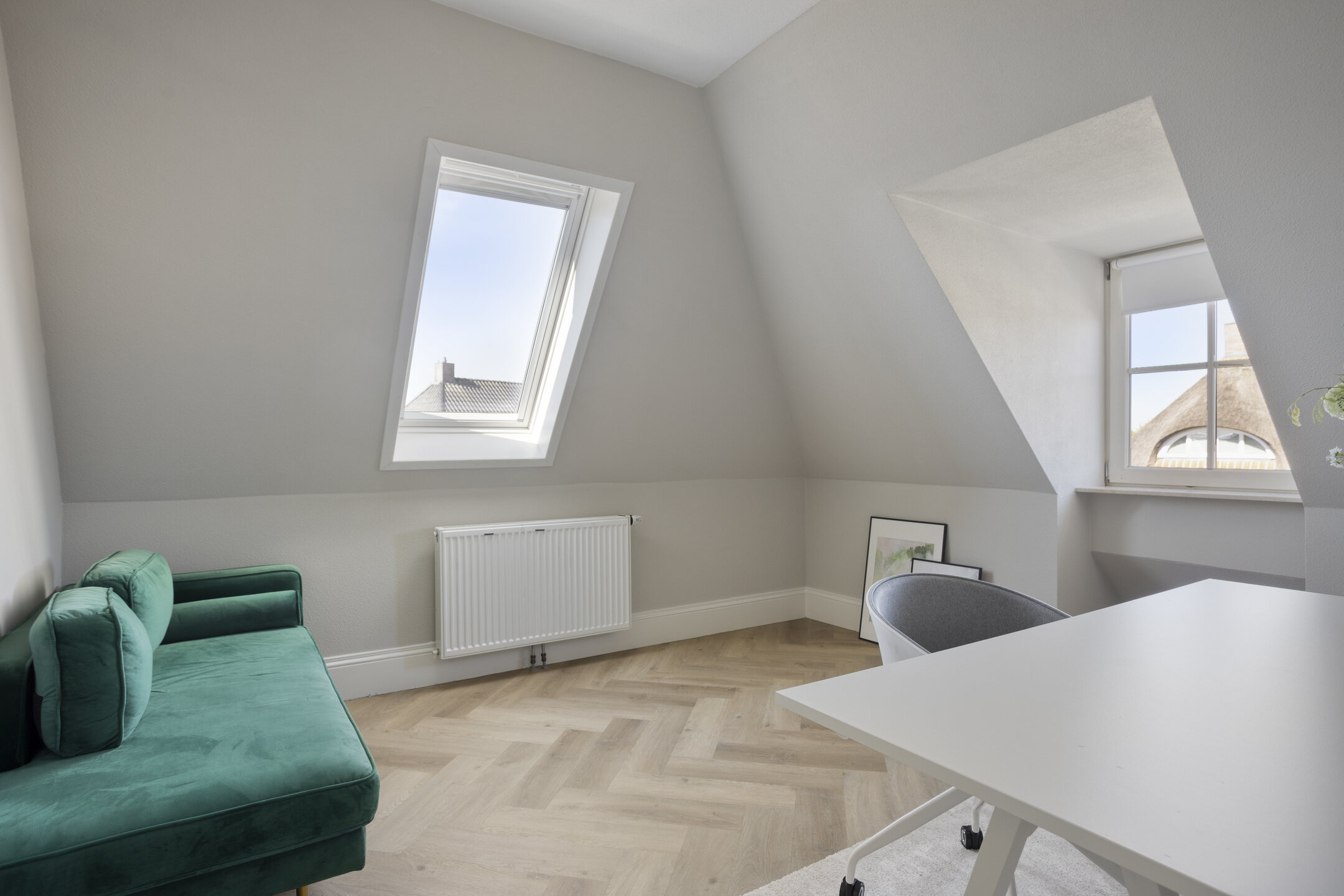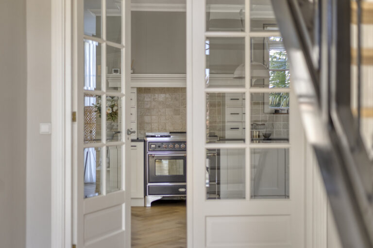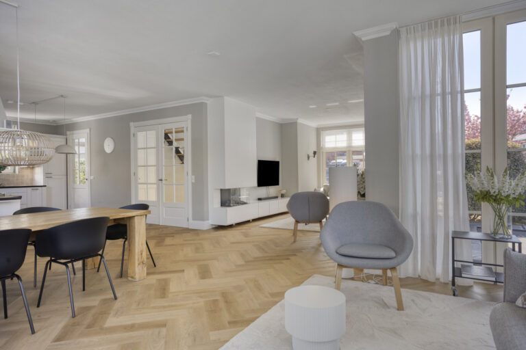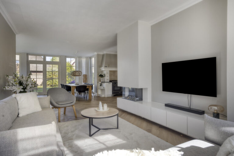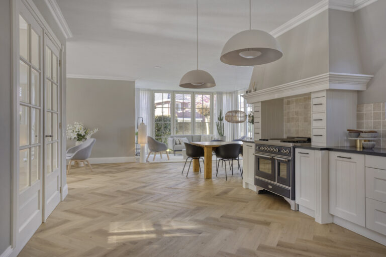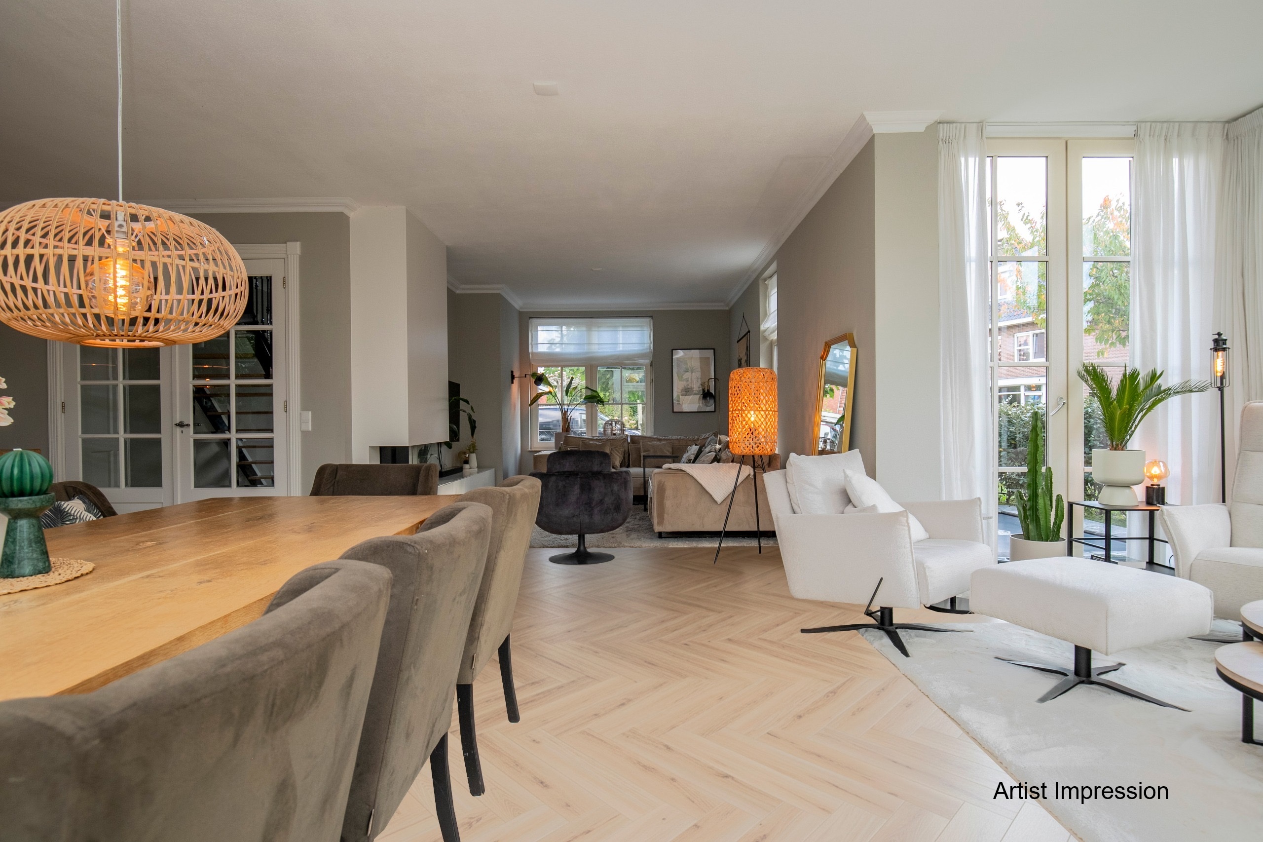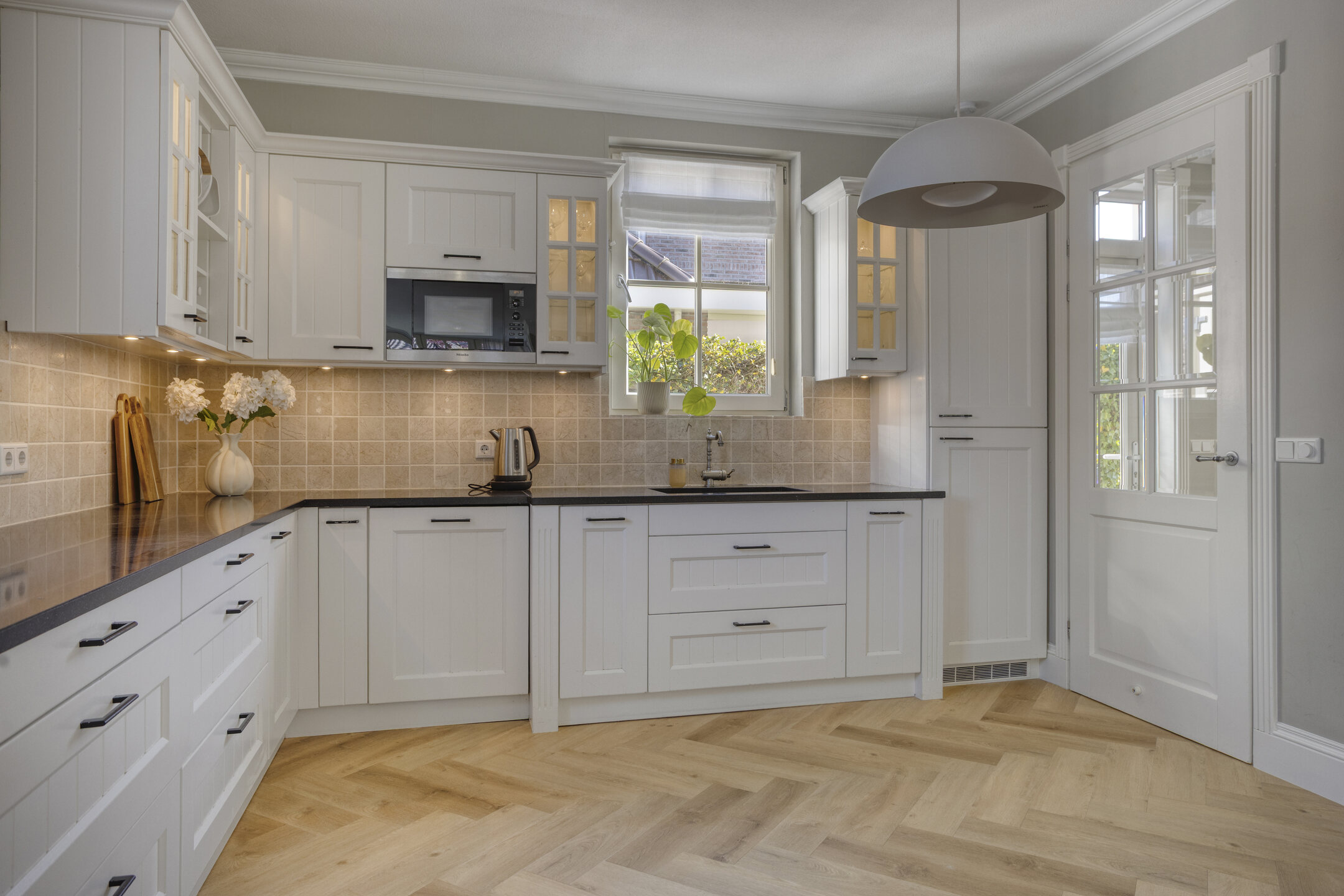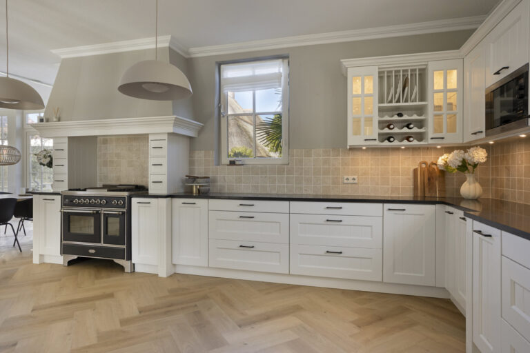 De ruime woonkeuken vormt het kloppend hart van het huis. Met hoogwaardige inbouwapparatuur, een royaal eiland met bar en volop werkruimte, is dit de ideale plek om samen te koken, borrelen of gewoon lekker te zitten. Aangrenzend vind je de woonkamer, waar openslaande deuren toegang geven tot de sfeervolle tuin.