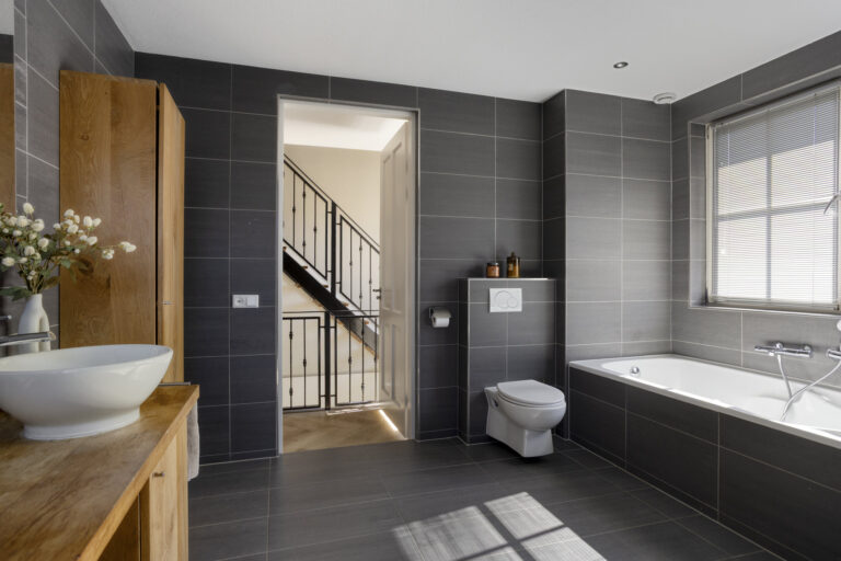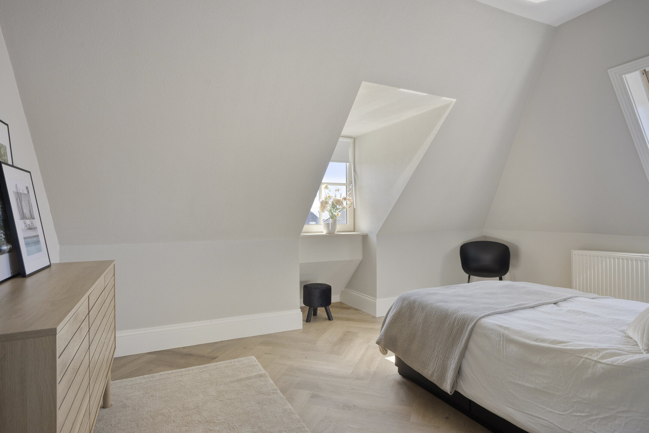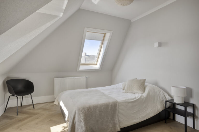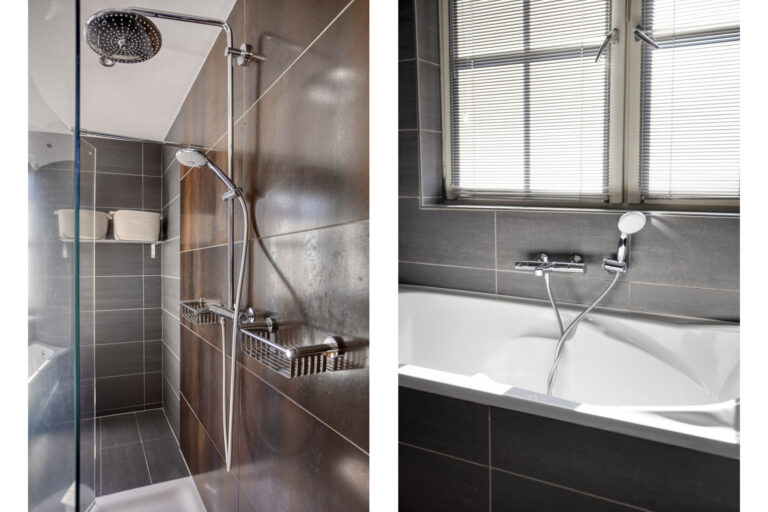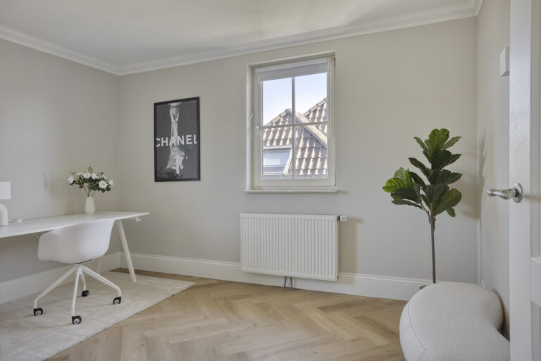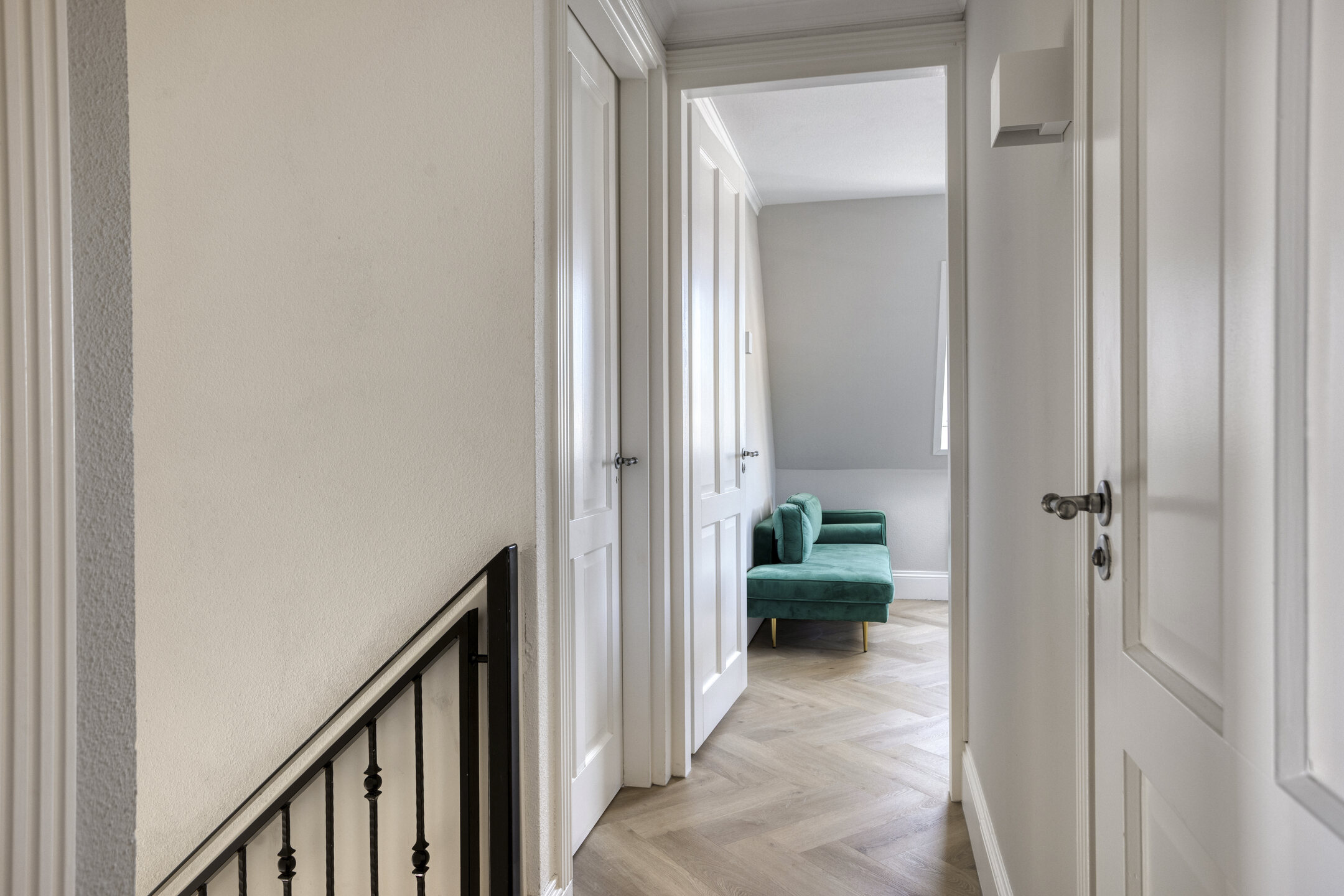 Drie ruime slaapkamers, waarvan één met toegang tot het dakterras aan de achterzijde, luxe badkamer met ligbad, inloopdouche, dubbele wastafel en toilet en ruime overloop.