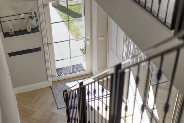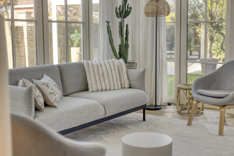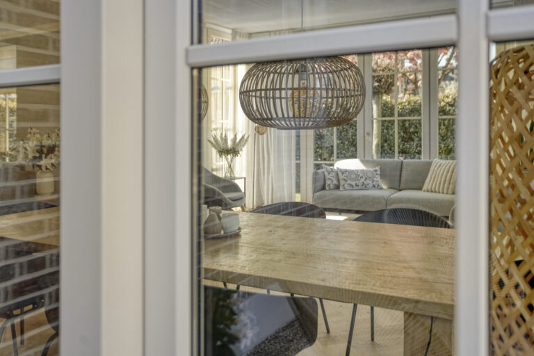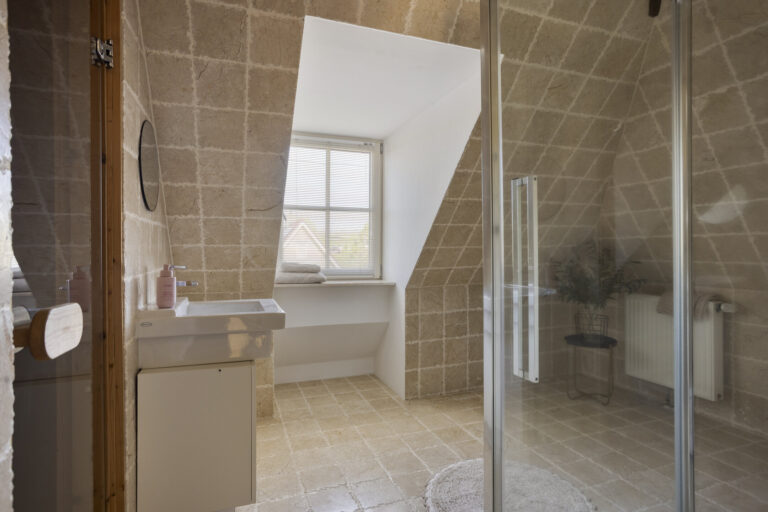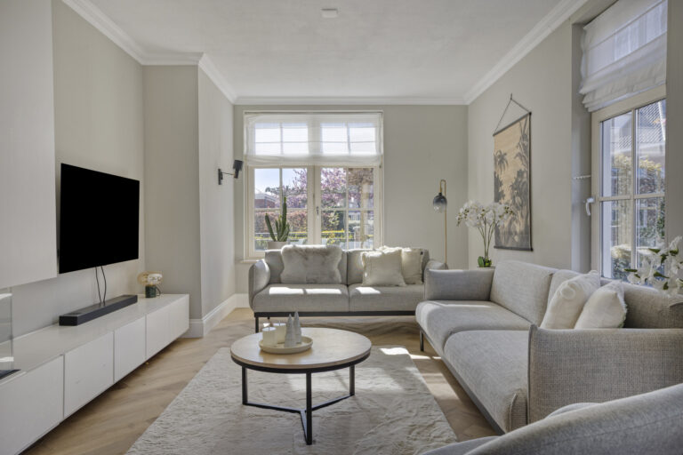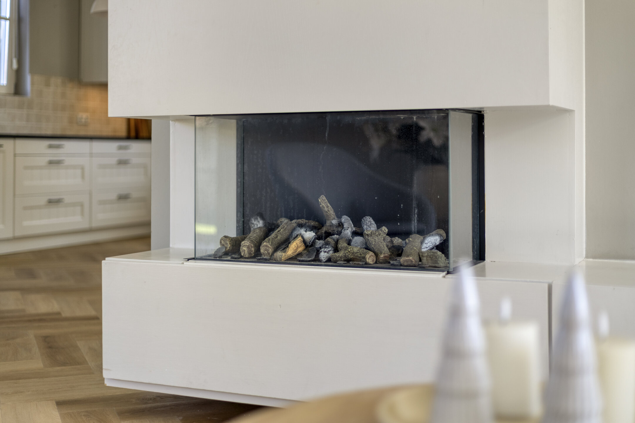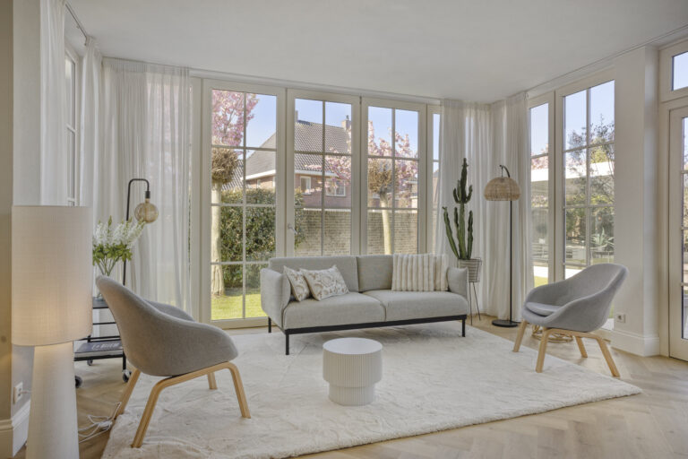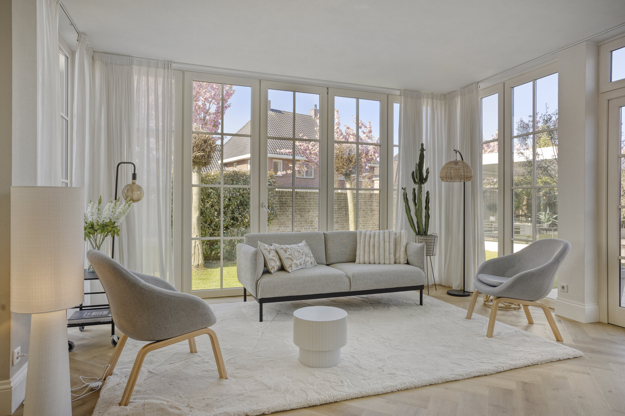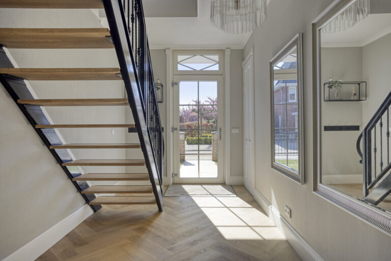 Binnen tref je een perfecte balans tussen stijl, comfort en functionaliteit. De begane grond is voorzien van vloerverwarming onder een natuurstenen vloer. De wanden en plafonds zijn glad gestuct en alles is tot in de puntjes afgewerkt. Dankzij de grote ramen rondom is het in elke ruimte licht en aangenaam, met prachtig zicht op de tuin.