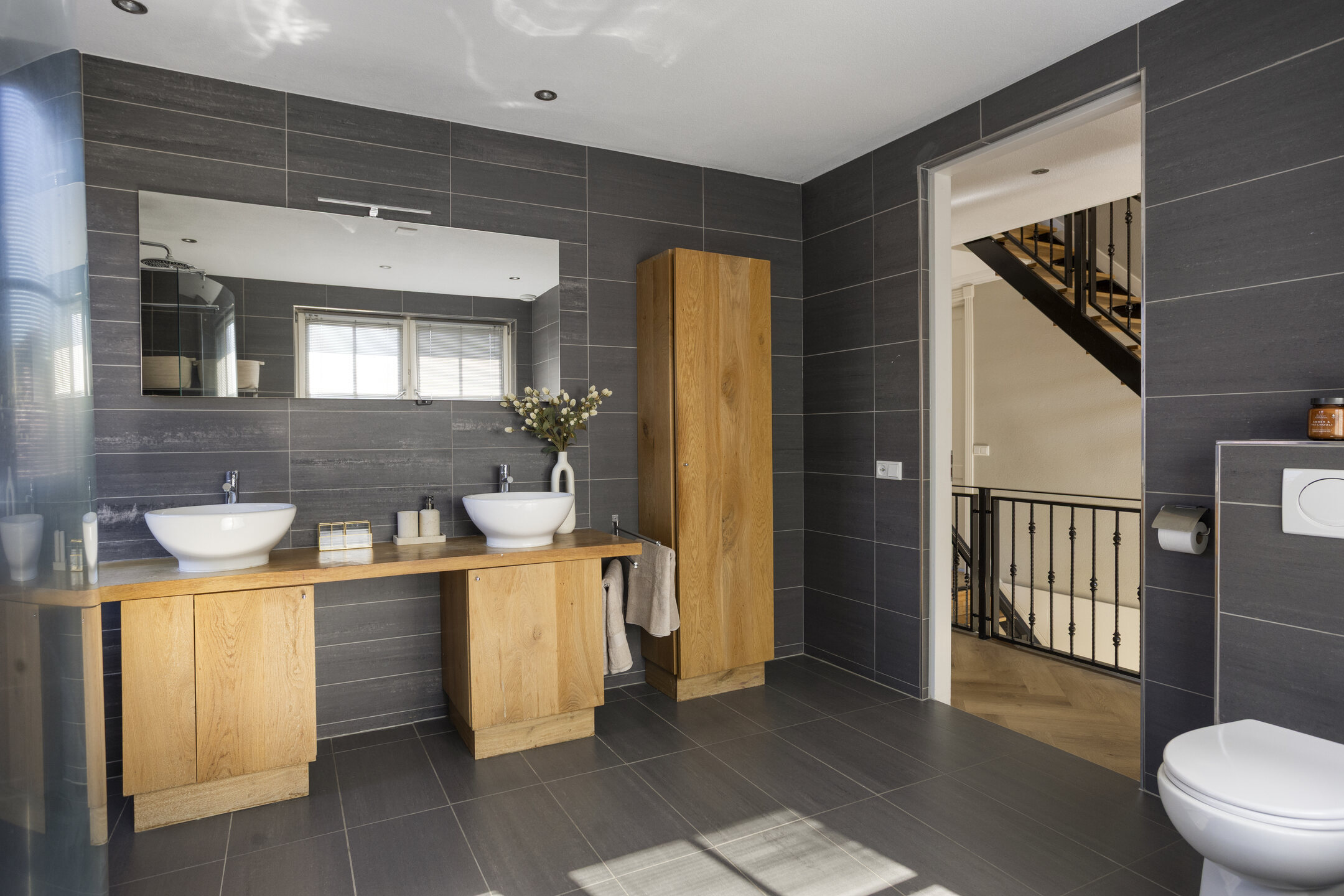 Op de verdiepingen vind je maar liefst zes ruime slaapkamers, verdeeld over de eerste en tweede verdieping. De woning beschikt over twee luxe badkamers, waarvan één met inloopdouche, ligbad en dubbele wastafel en één met douche, wastafel en toilet en de sauna, die het gevoel van een wellnessruimte aan huis compleet maakt.