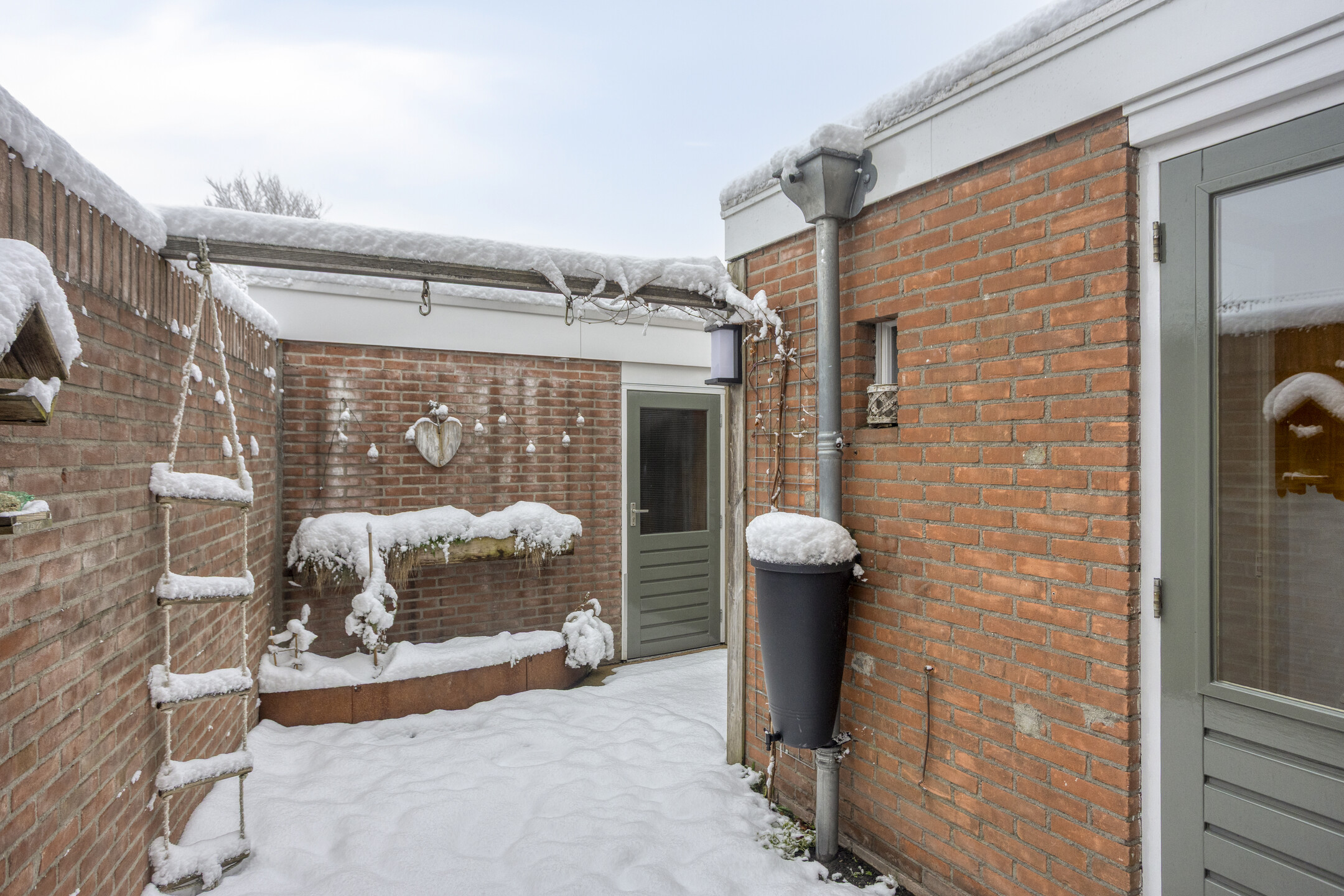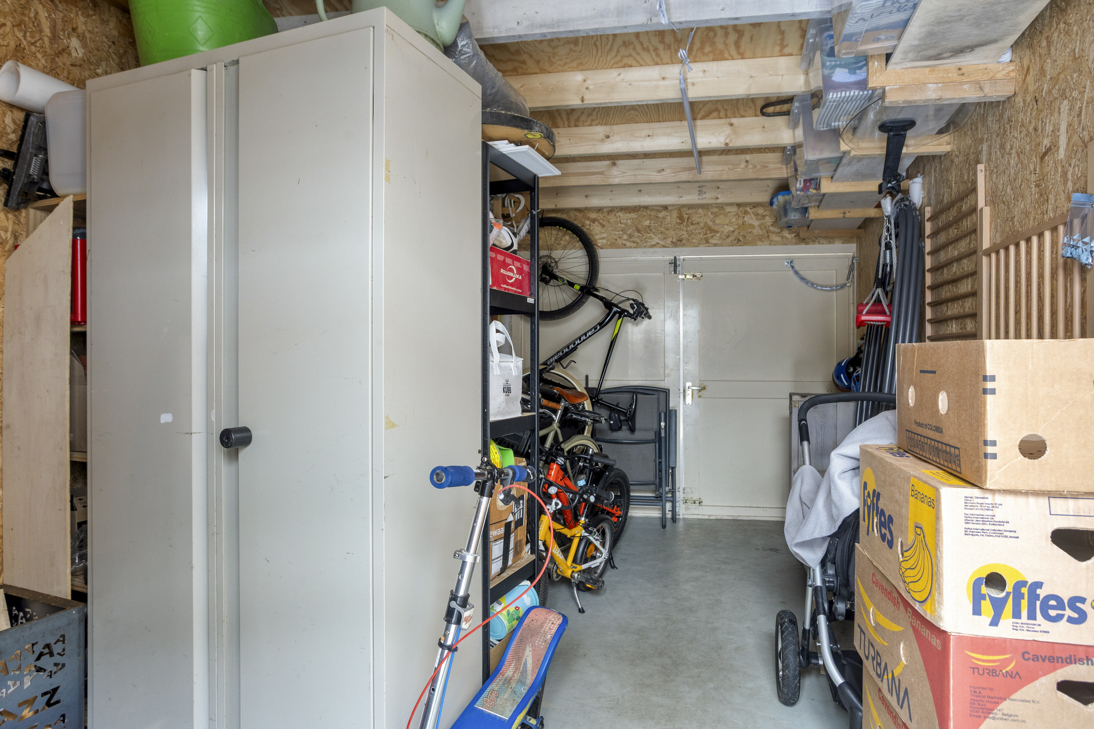 De gezellige tuin is gelegen op het zuidoosten en biedt veel privacy. De vrijstaande stenen garage is bereikbaar via de tuin en via de dubbele deuren aan de achterzijde en biedt veel mogelijkheden voor stalling of opslag van spullen. De garage komt uit op parkeerplaats ‘de Bongerd’, die grenst aan de Albert Heijn. De tuin beschikt ook over een achterom.