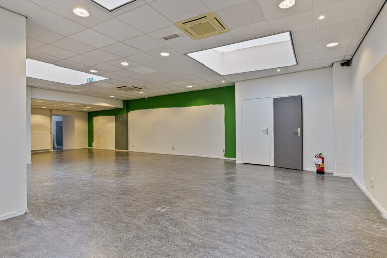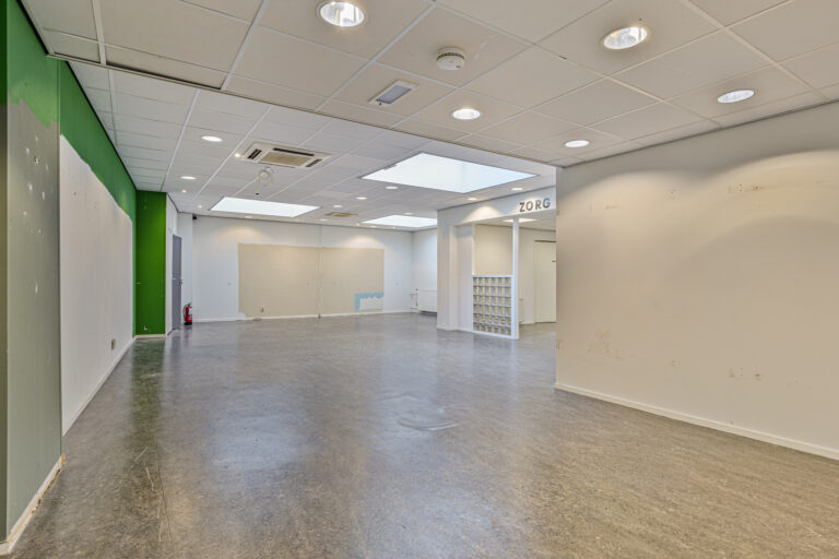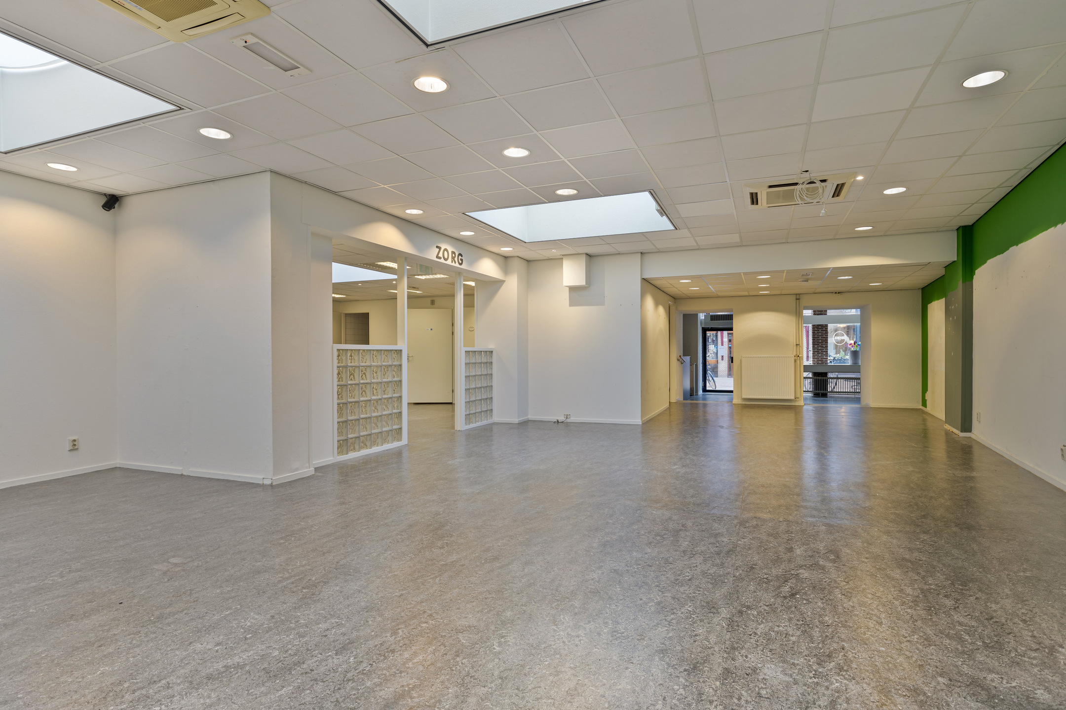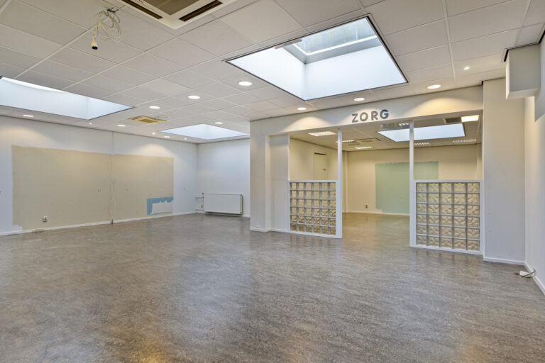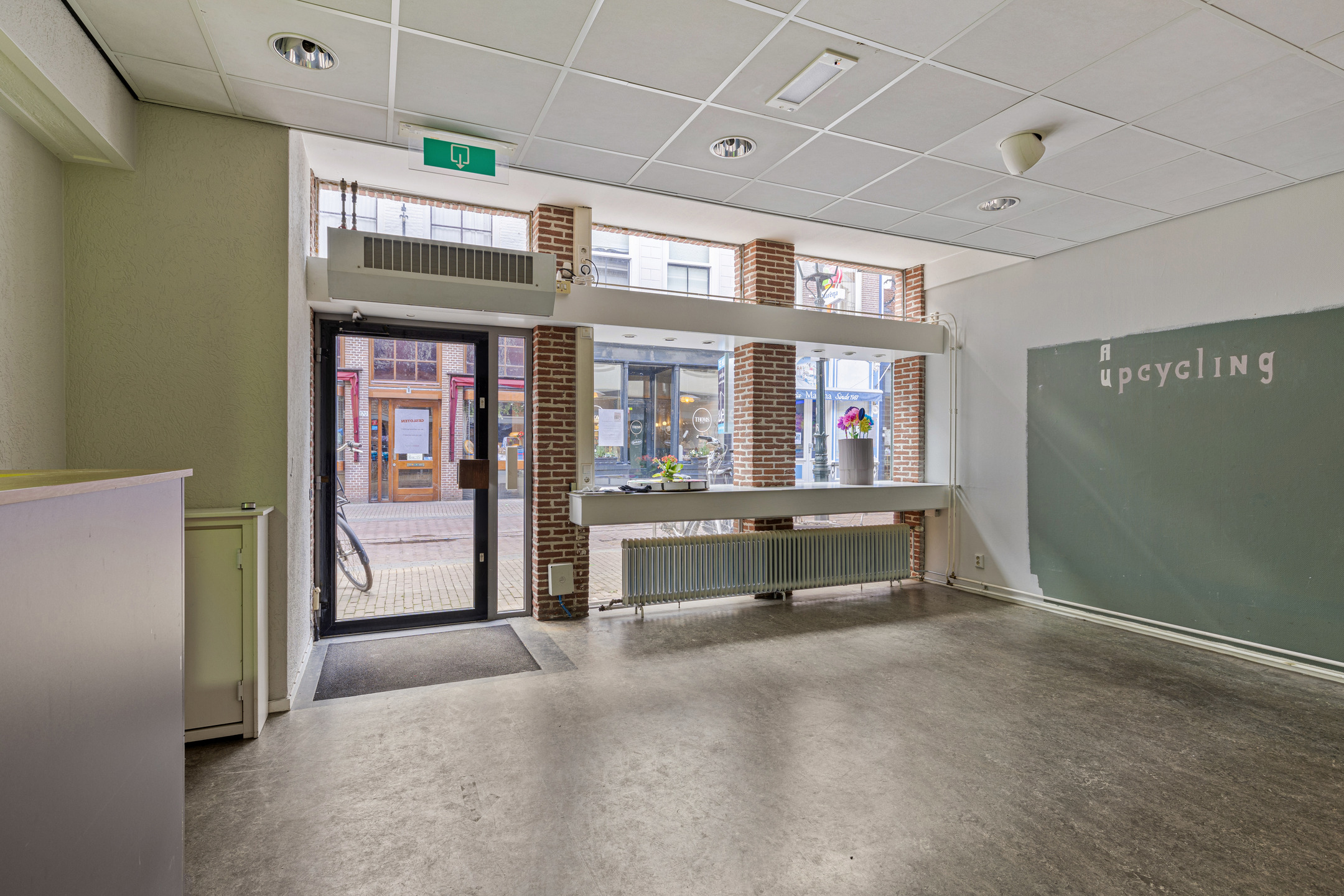 Winkelruimte van circa 180 m2 verkoopruimte. Tevens bevindt zich hier de hal, meterkast en trapopgang voor de bovenwoning.