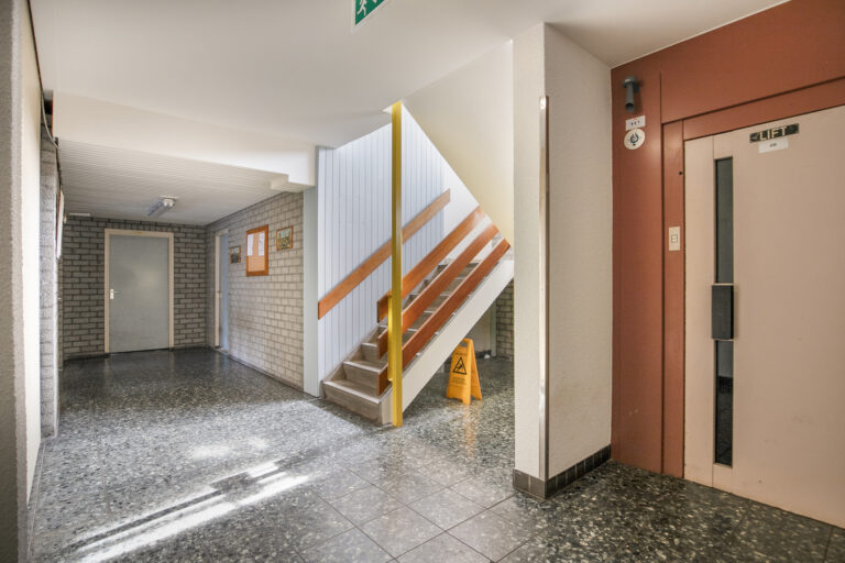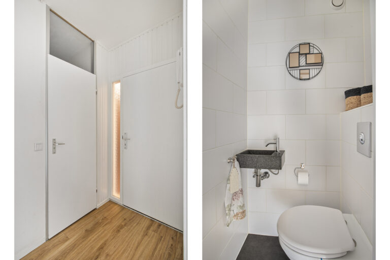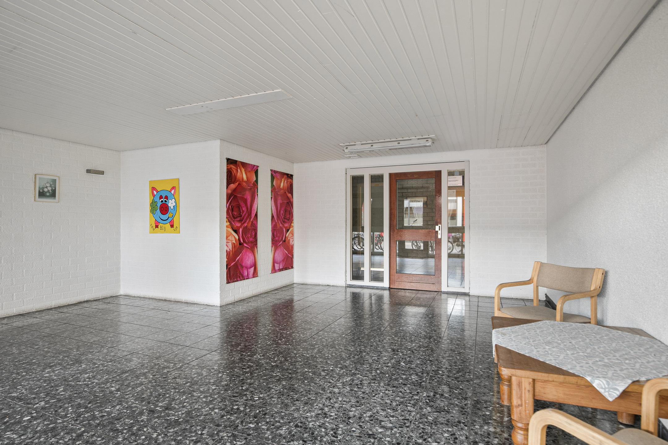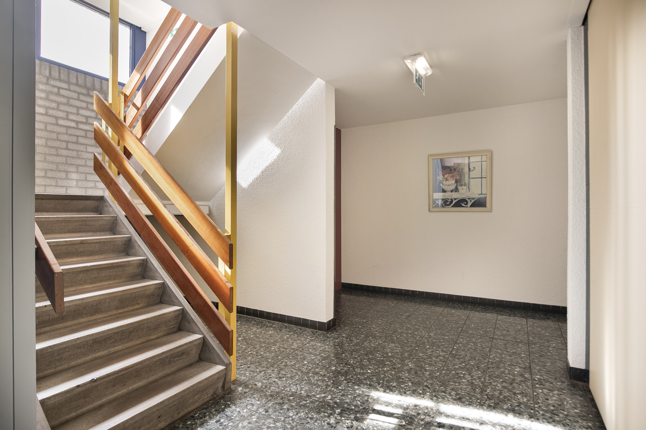 Via de ruime entree bereik je het appartement eenvoudig met de trap of lift. Binnen kom je in de hal, waar je toegang hebt tot de badkamer, het toilet en de meterkast. De badkamer is netjes ingericht met een douche en wastafelmeubel.