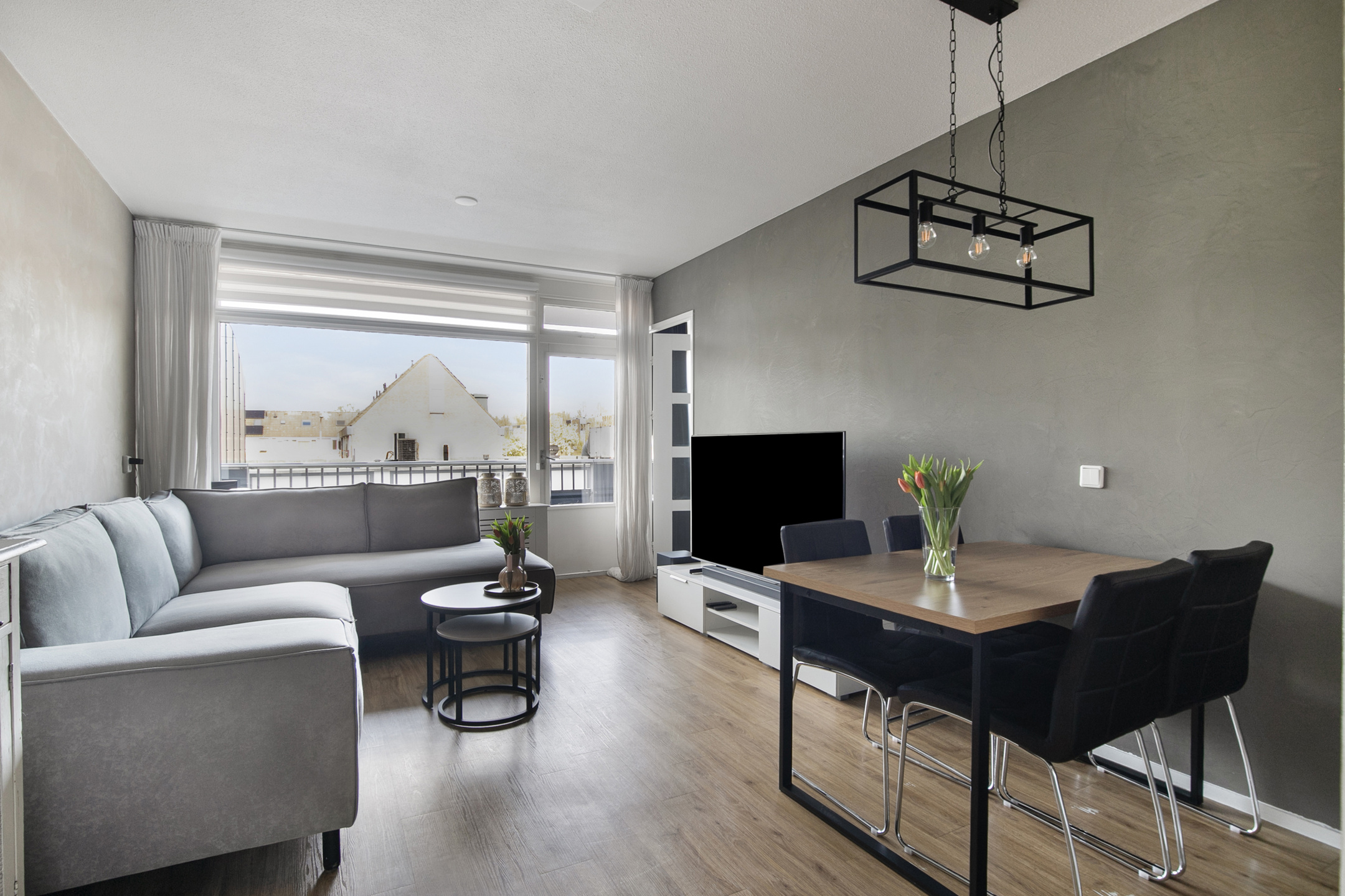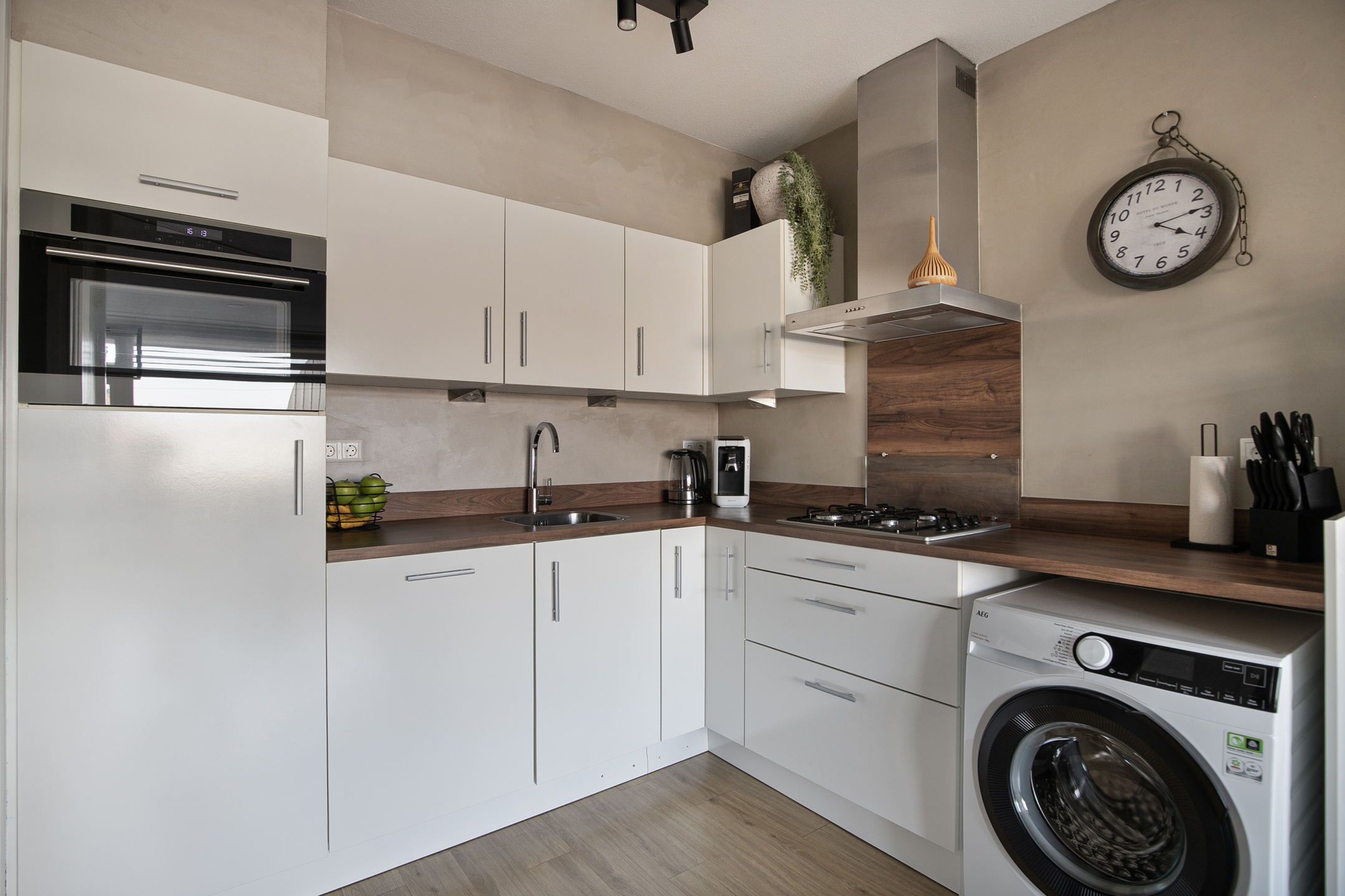 De open keuken is voorzien van inbouwapparatuur en een aansluiting voor de wasmachine. De lichte woonkamer geeft toegang tot een ruim balkon waar je heerlijk kunt ontspannen, én tot de royale slaapkamer met vaste kast.