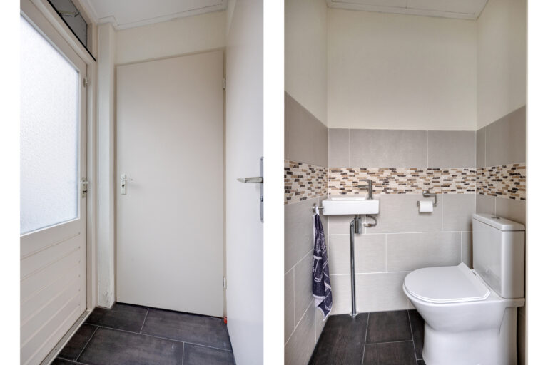 Via de entree bereik je de hal en woonkamer. Deze is door de ensuite deuren makkelijk te scheiden. De zithoek is tuingericht en de eetkamer straatgericht. Door de grote raampartijen aan de achterzijde en de erker aan de voorzijde is de gehele woonruimte lekker licht.