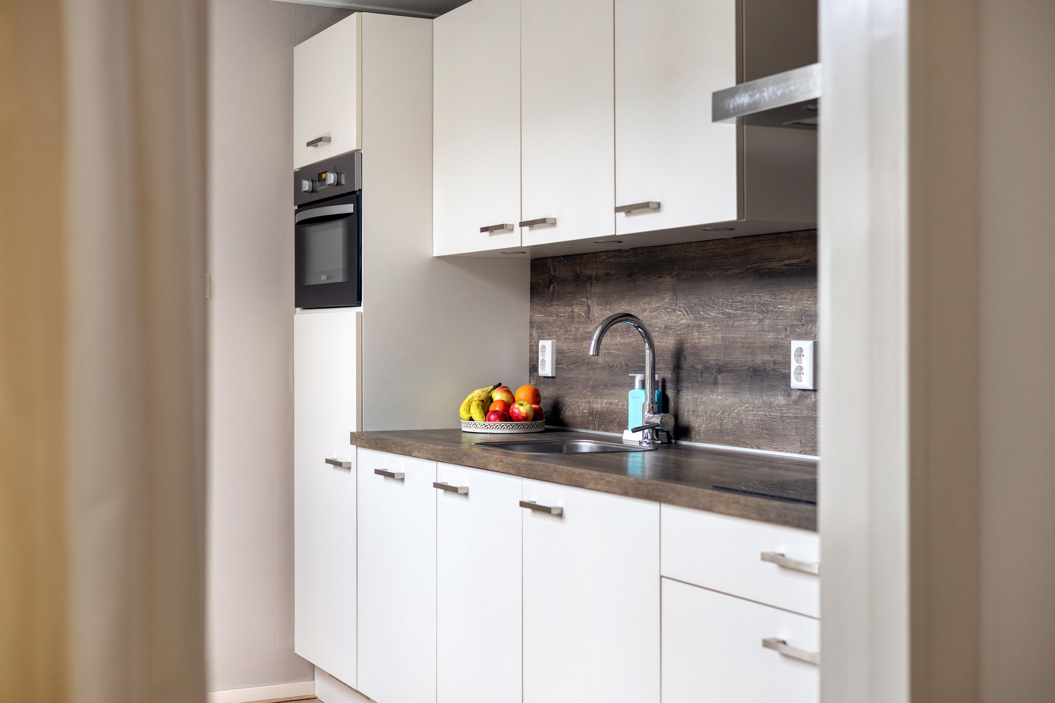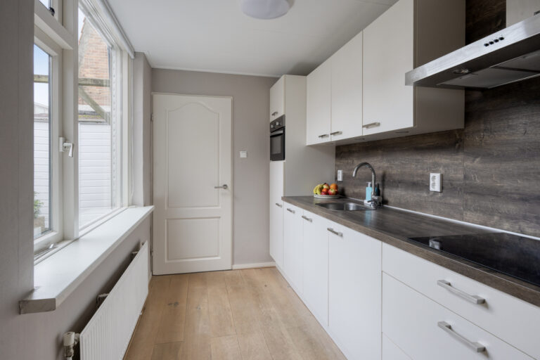 De fraaie keuken (nieuw geplaatst in 2018) bevindt zich in de uitbouw en is uitgerust met een inductie kookplaat, afzuigkap, koelkast en combi-oven/magnetron. Achter de keuken vind je een handige bijkeuken en toilet, die in 2017 is vernieuwd.