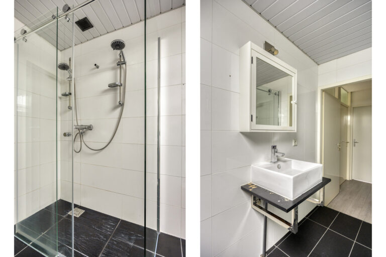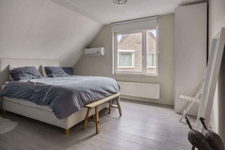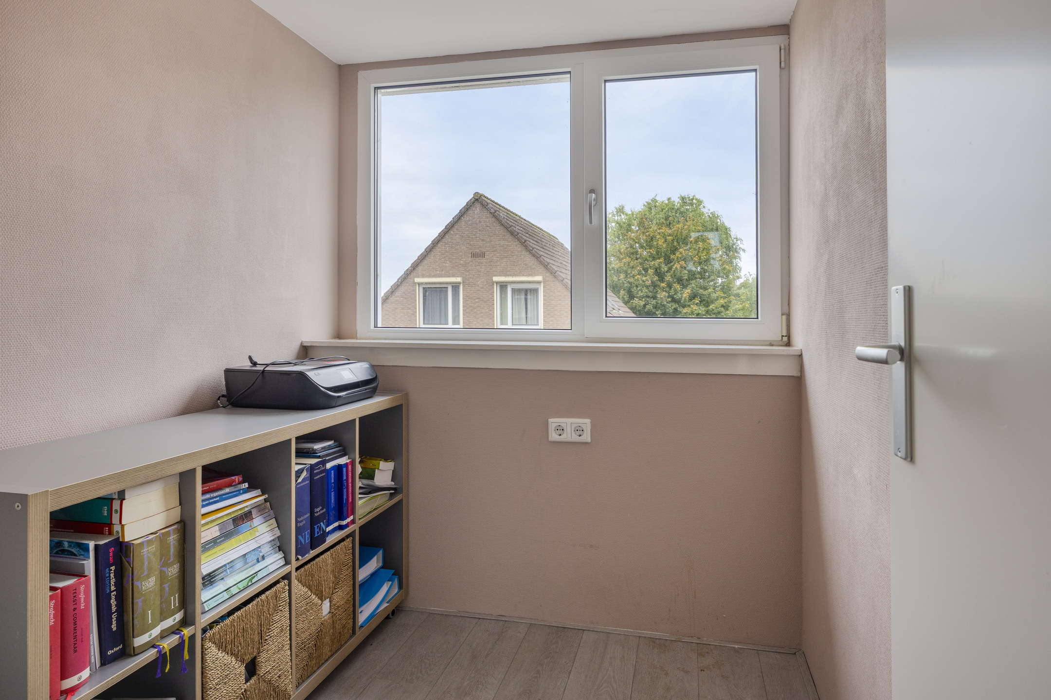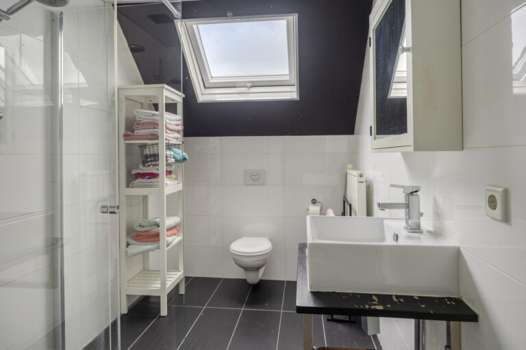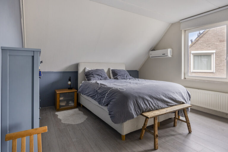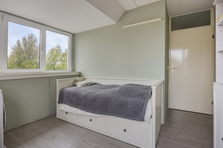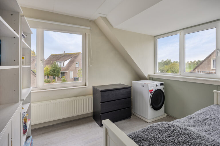 Op de eerste verdieping zijn 3 slaapkamers en de badkamer te vinden. Eén van deze kamers is nu in gebruik als werkkamer. Door de dakkapel aan de voorzijde is één van de slaapkamers extra ruim! De badkamer is voorzien van een wastafel, toilet en inloopdouche. Via de vlizotrap is de vliering bereikbaar, waar je genoeg ruimte hebt om spullen op te bergen.