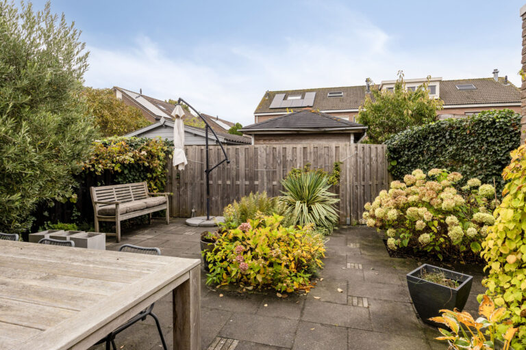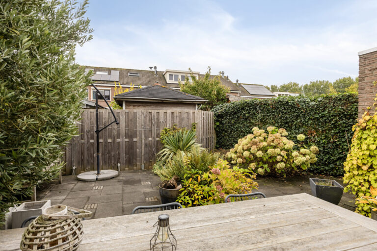 De keurig aangelegde achtertuin is lekker ruim en gelegen op het oosten. Hier geniet je optimaal van de privacy en rust van de omgeving. De woning heeft een aangebouwde garage van circa 21 m2. Op de eigen oprit is er plek voor 2 auto’s.