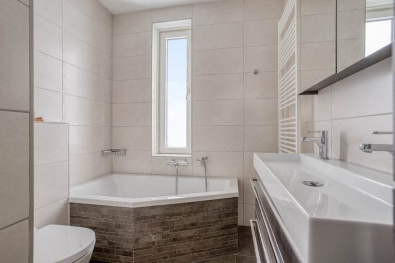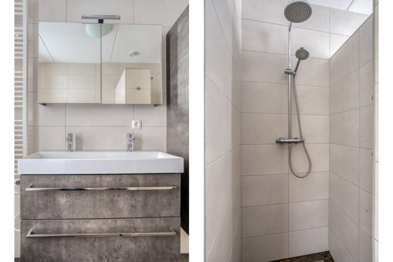 Op de eerste verdieping beschikt de woning over 3 ruime slaapkamers. Alle slaapkamers beschikken over elektrische rolluiken en ook de gehele eerste verdieping wordt verwarmd middels vloerverwarming. De moderne badkamer is ingericht met een ligbad, inloopdouche, toilet en wastafel.