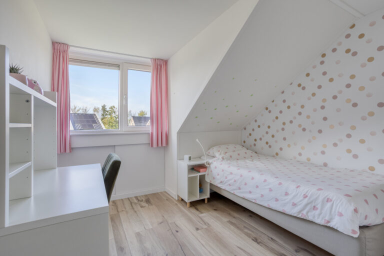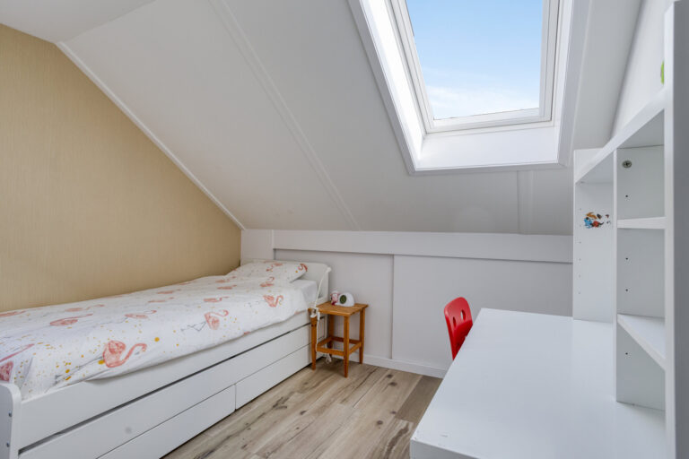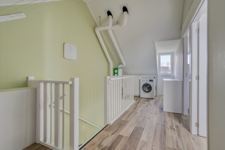 De zolderverdieping is gesplitst in een ruime overloop en 2 extra slaapkamers. Op de overloop is plaats voor de wasmachine. De twee slaapkamers zijn lekker ruim en door de dakkapel aan de voorzijde ook nog extra licht. Er is een bergzolder boven de twee slaapkamers.
