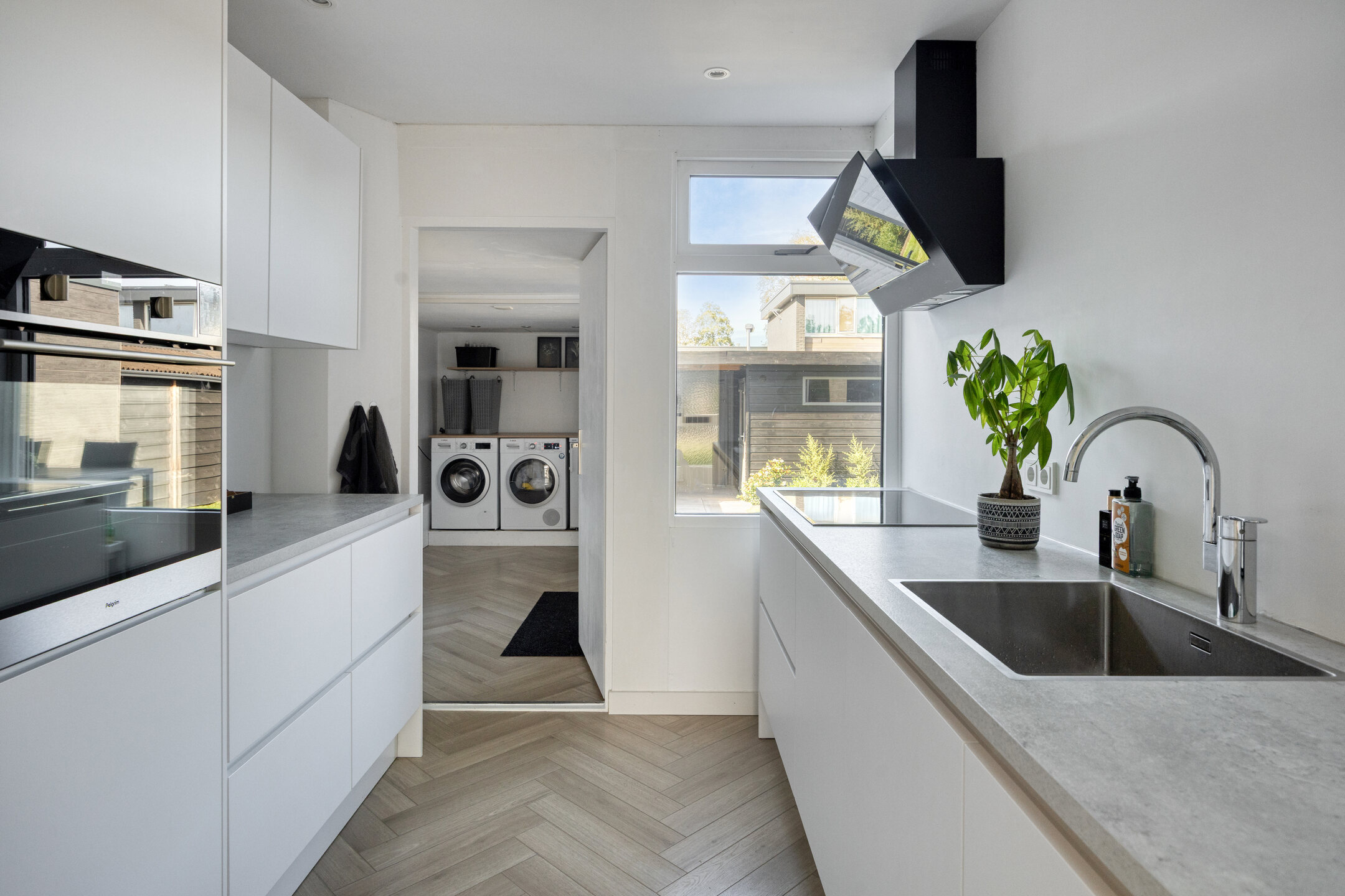 De gehele begane grond wordt verwarmd middels vloerverwarming, dat zorgt voor een comfortabele en gereguleerde warmte. De moderne keuken, geplaatst in 2021, is uitgerust met een koelkast, vaatwasser, oven, inductie kookplaat en afzuigkap. Achter de keuken bevindt zich een handige en ruime bijkeuken met plaats voor de wasmachine en droger.