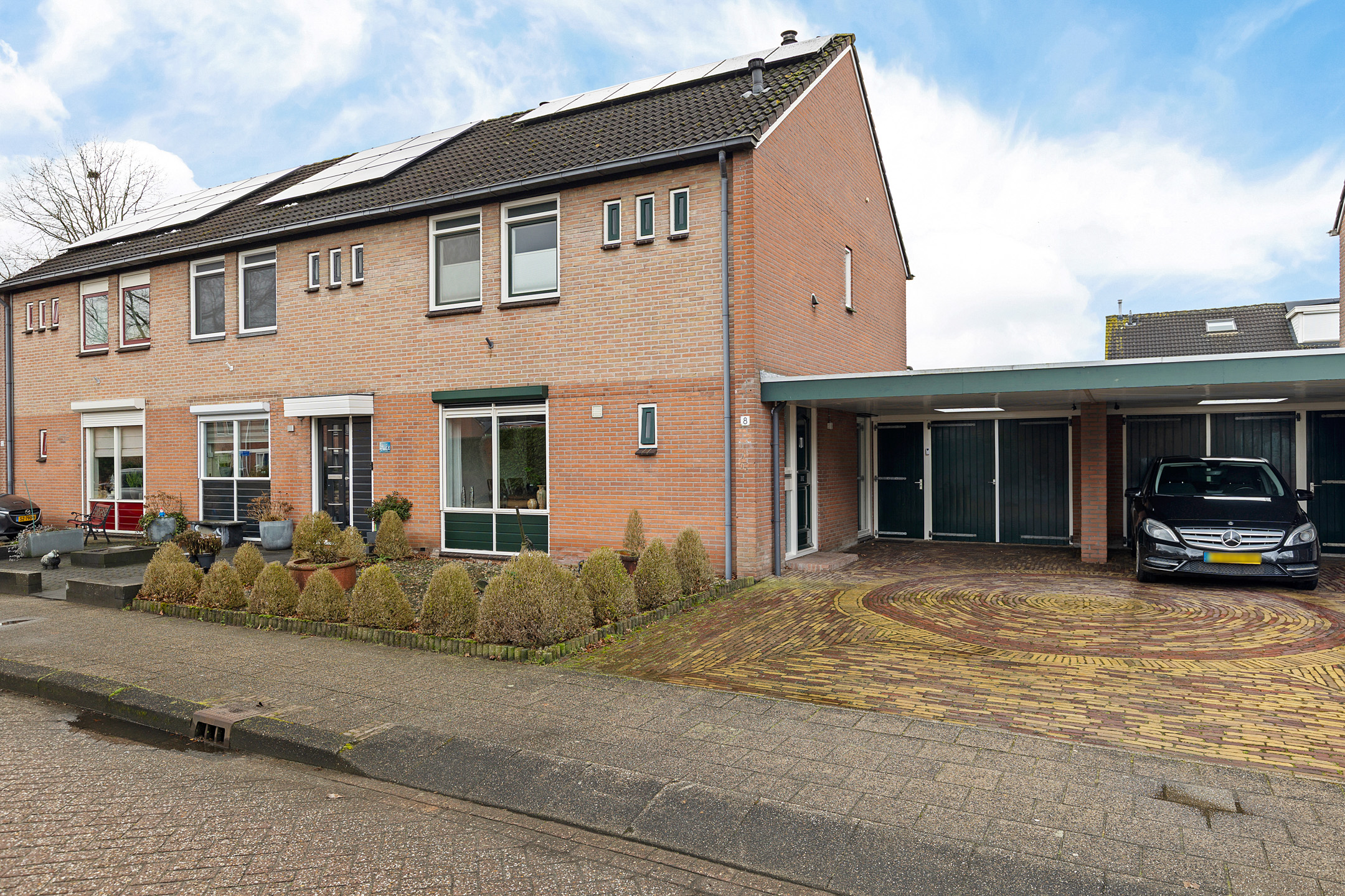 Aan de voorzijde parkeer je de auto gemakkelijk op eigen terrein, eventueel zelfs onder de carport.