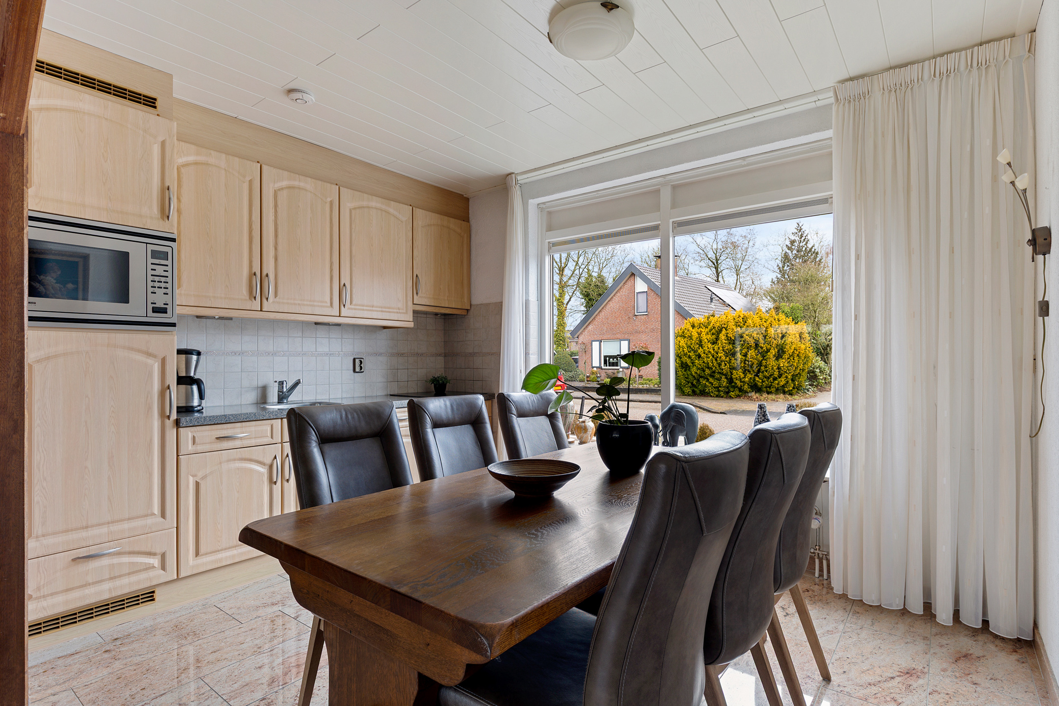 Dankzij de grote glazen pui is de woonkamer licht en ruim van opzet. Daarnaast is de woonkamer voorzien van vloerverwarming, wat zorgt voor een aangename en gelijkmatige warmte het hele jaar door. De keuken ligt aan de voorzijde van de woning en is voorzien van een koelkast, magnetron, inductiekookplaat en afzuigkap. Vanuit het raam heb je zicht op de straatzijde.