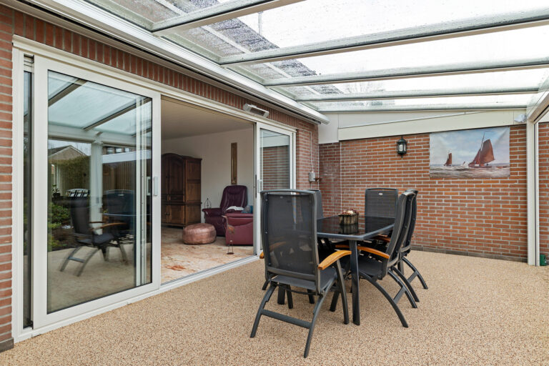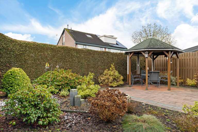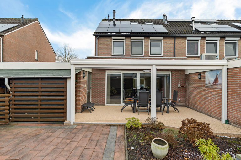 De achtertuin ligt op het zuidwesten en biedt dankzij de overkapping een fijne plek om beschut buiten te zitten. Of je nu houdt van tuinieren, loungen of lange zomeravonden aan tafel; hier kan het allemaal.