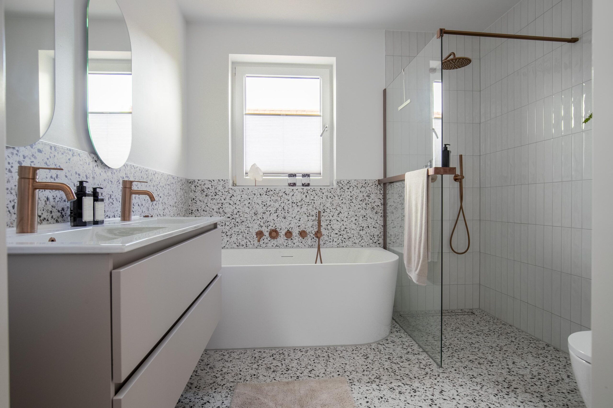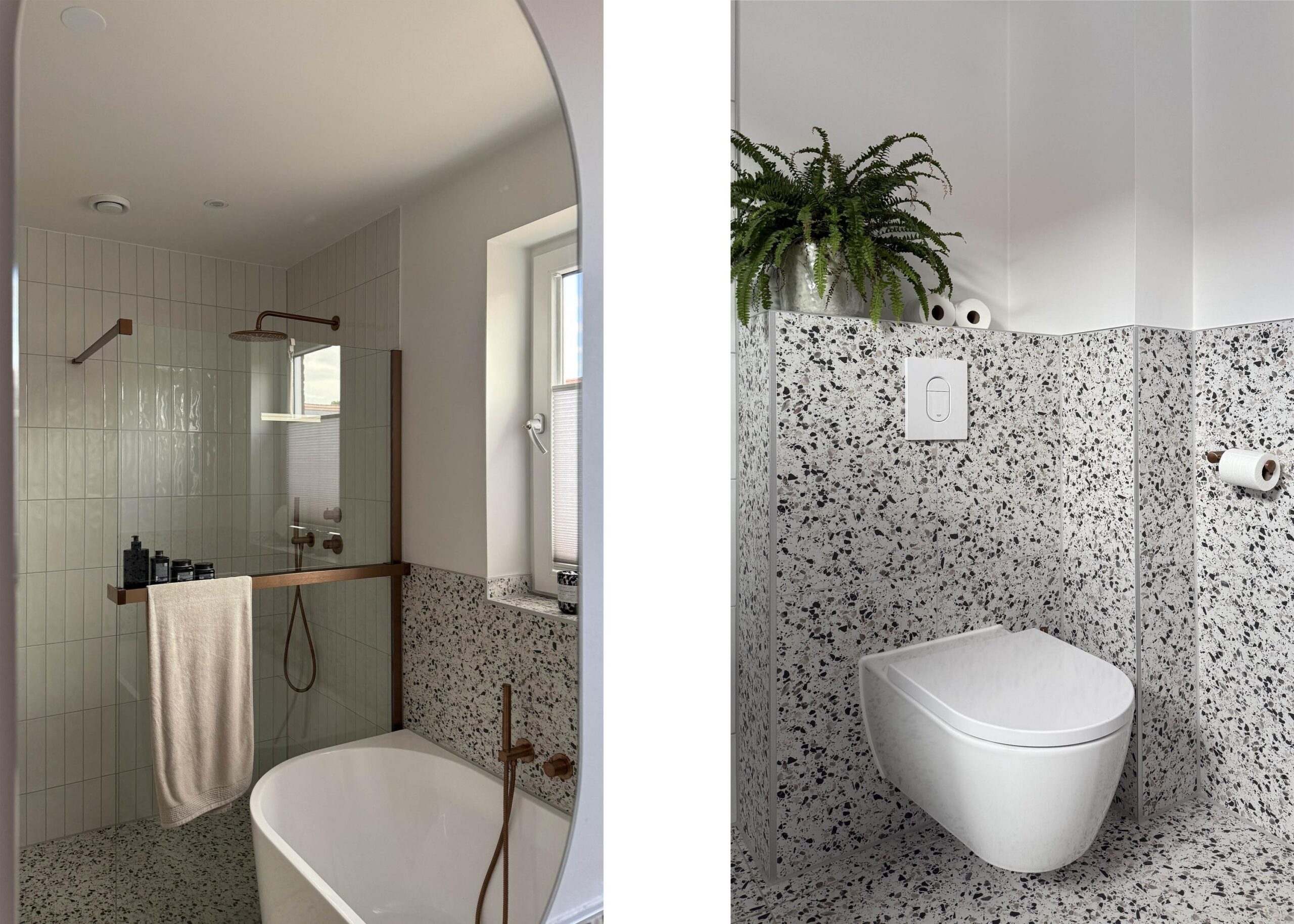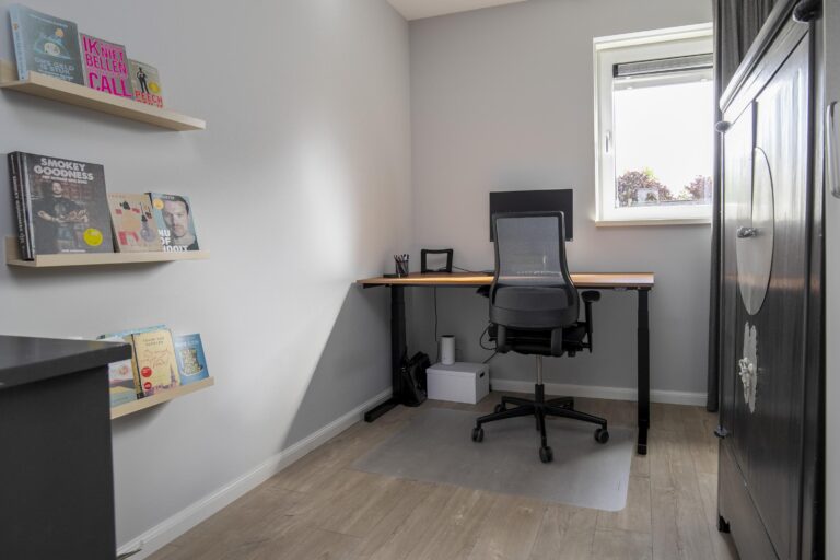 Op de eerste verdieping vind je drie slaapkamers, ideaal voor een gezin of om een werkplek aan huis te creëren. De luxe badkamer (2025) is een echte blikvanger met een dubbele wastafel, ligbad, douche en tweede toilet. Net als de begane grond is ook deze verdieping voorzien van vloerverwarming, wat het wooncomfort verhoogt.